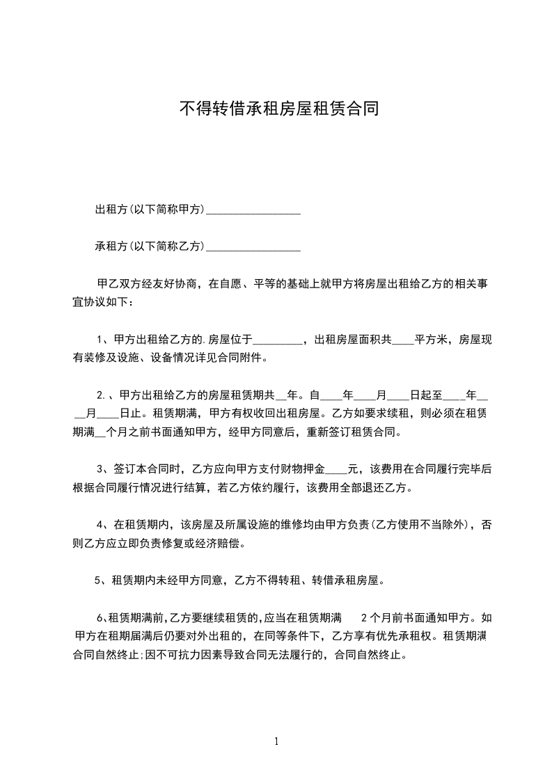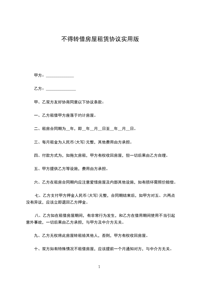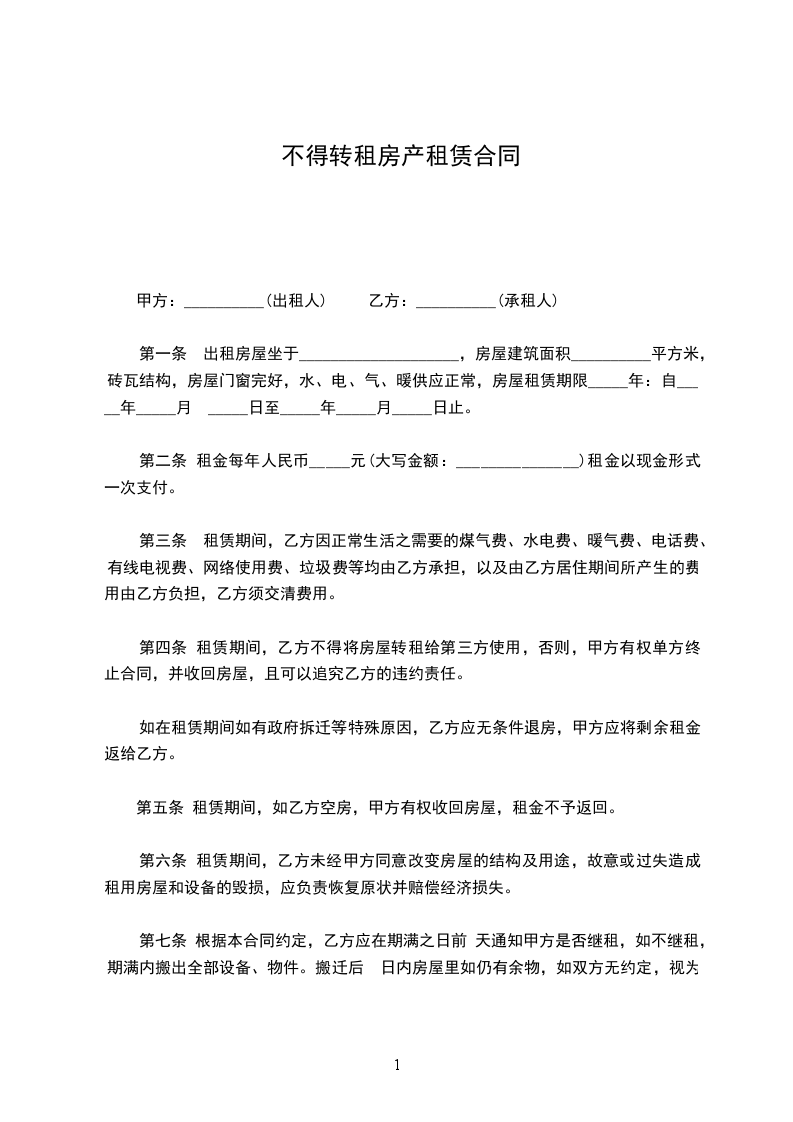 第二条房屋用途该房屋仅限租给____________,由其本人及家属居住,乙方不得再次租给别人获利或者与其他人合租,以免产生其他纠纷,乙方不得任意改变房屋用途,乙方应保证不能用来从事传销,集会等非法活动,如有违反视为违约。