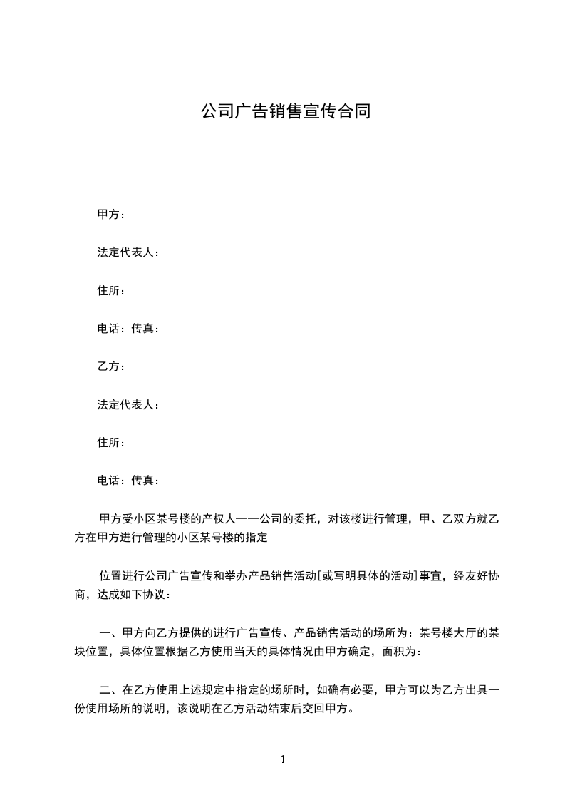 位置进行公司广告宣传和举办产品销售活动[或写明具体的活动]事宜,经友好协商,达成如下协议: