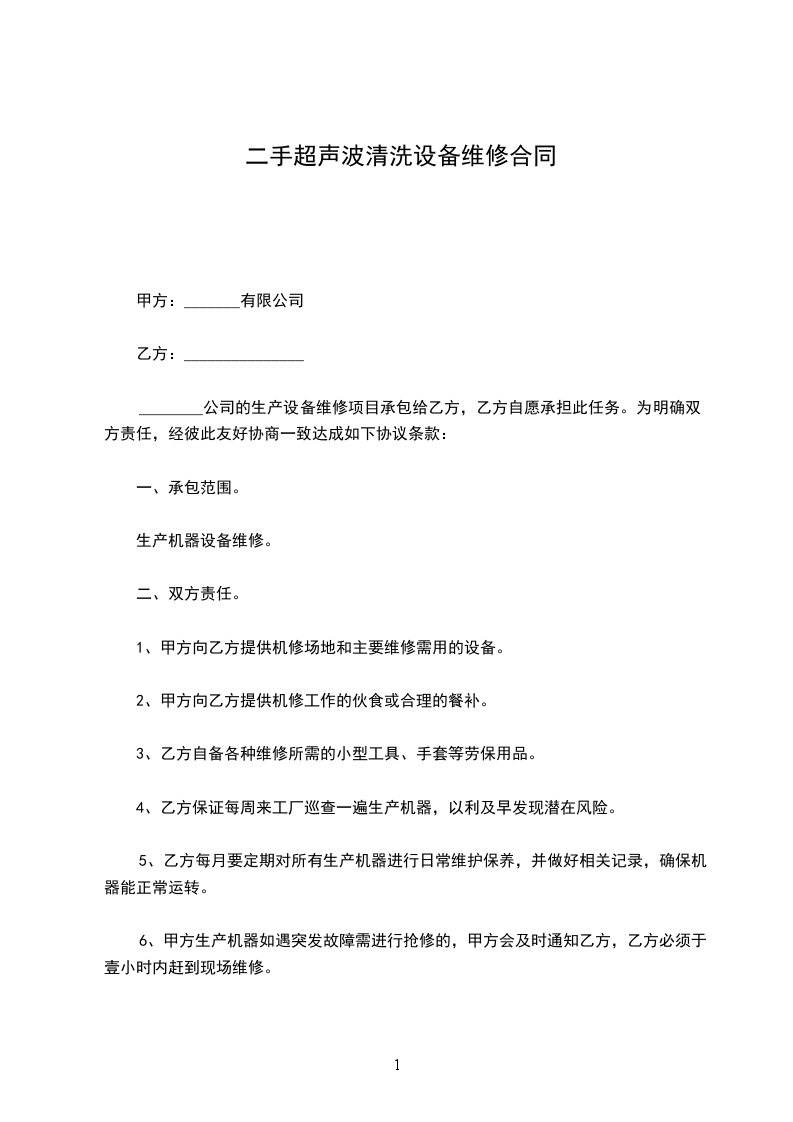 鉴于甲方拥有[设备名称及型号]等设备需要维修,乙方具备相关设备维修的专业能力和资质,甲乙双方经友好协商,就甲方设备维修事宜达成如下协议: