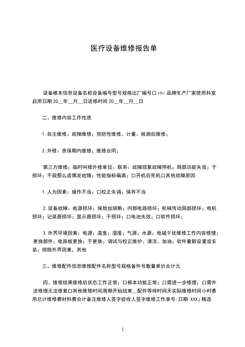 |[设备1详细名称]|[设备1具体型号]|[设备1编号]|[详细说明设备1的故障情况]|[阐述对设备1的维修要求]|[X]|