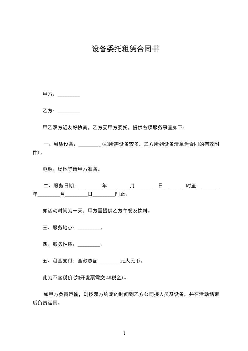 一、租赁设备:_________(如所需设备较多,乙方所列设备清单为合同的有效附件)。