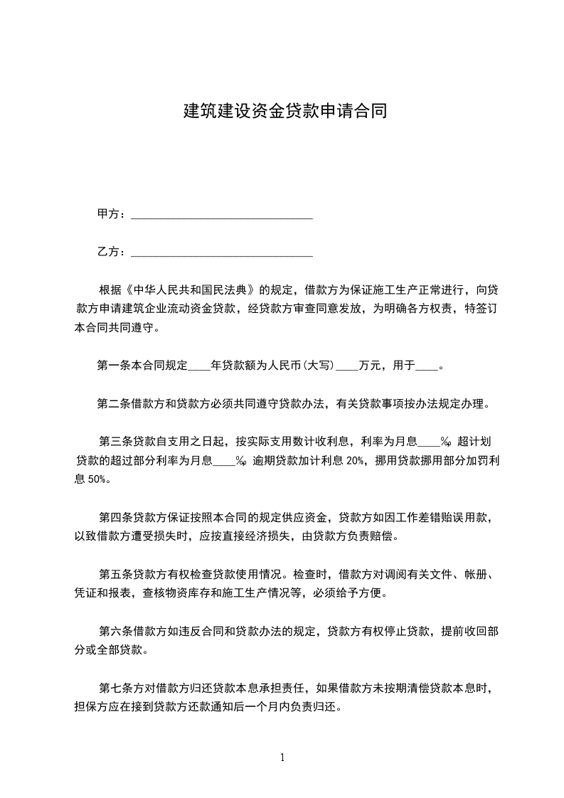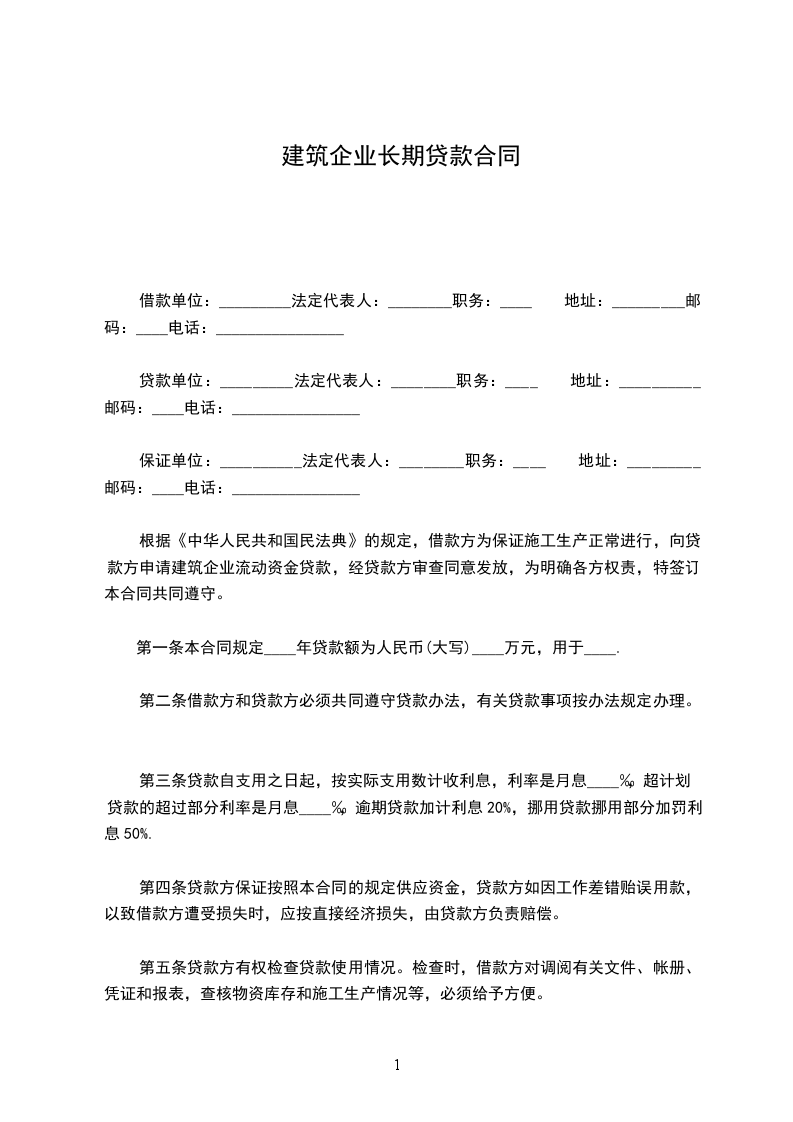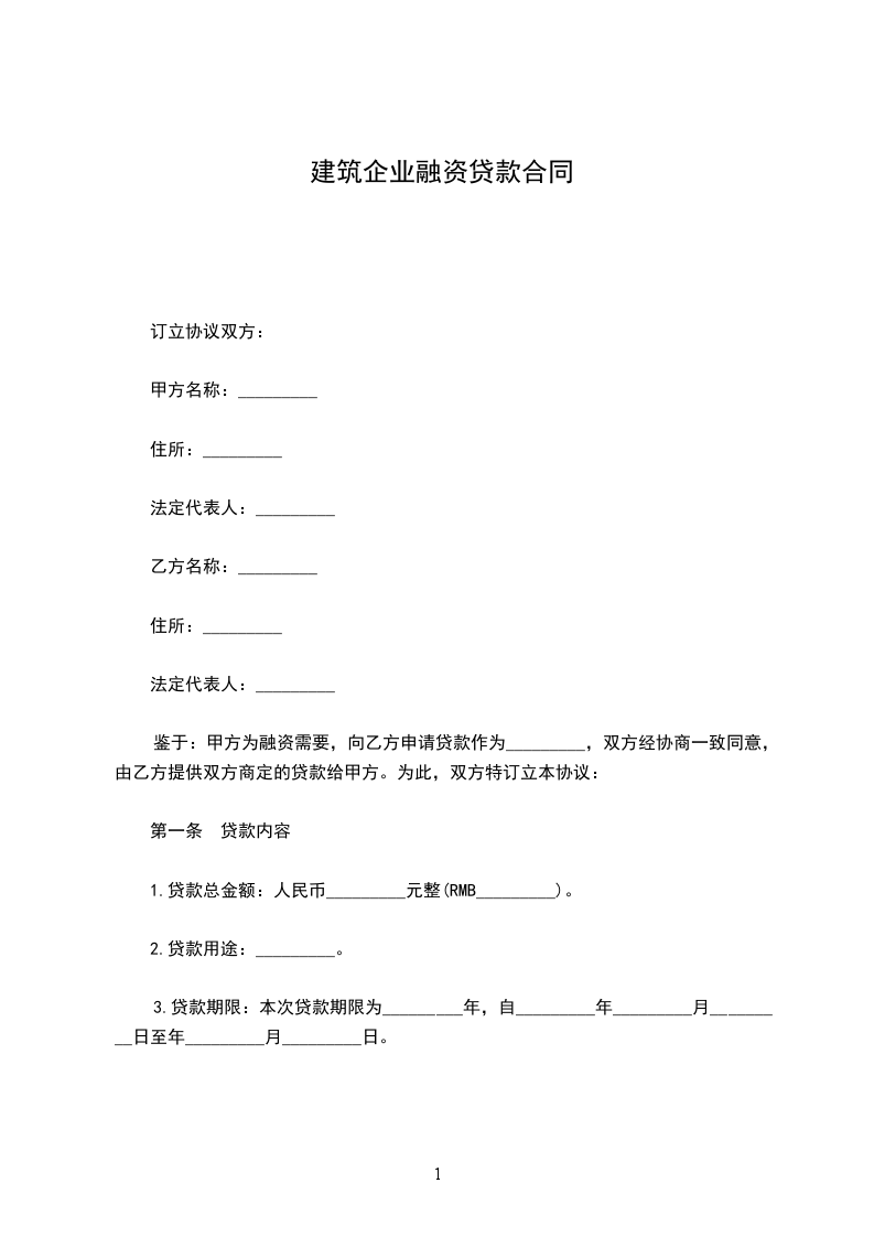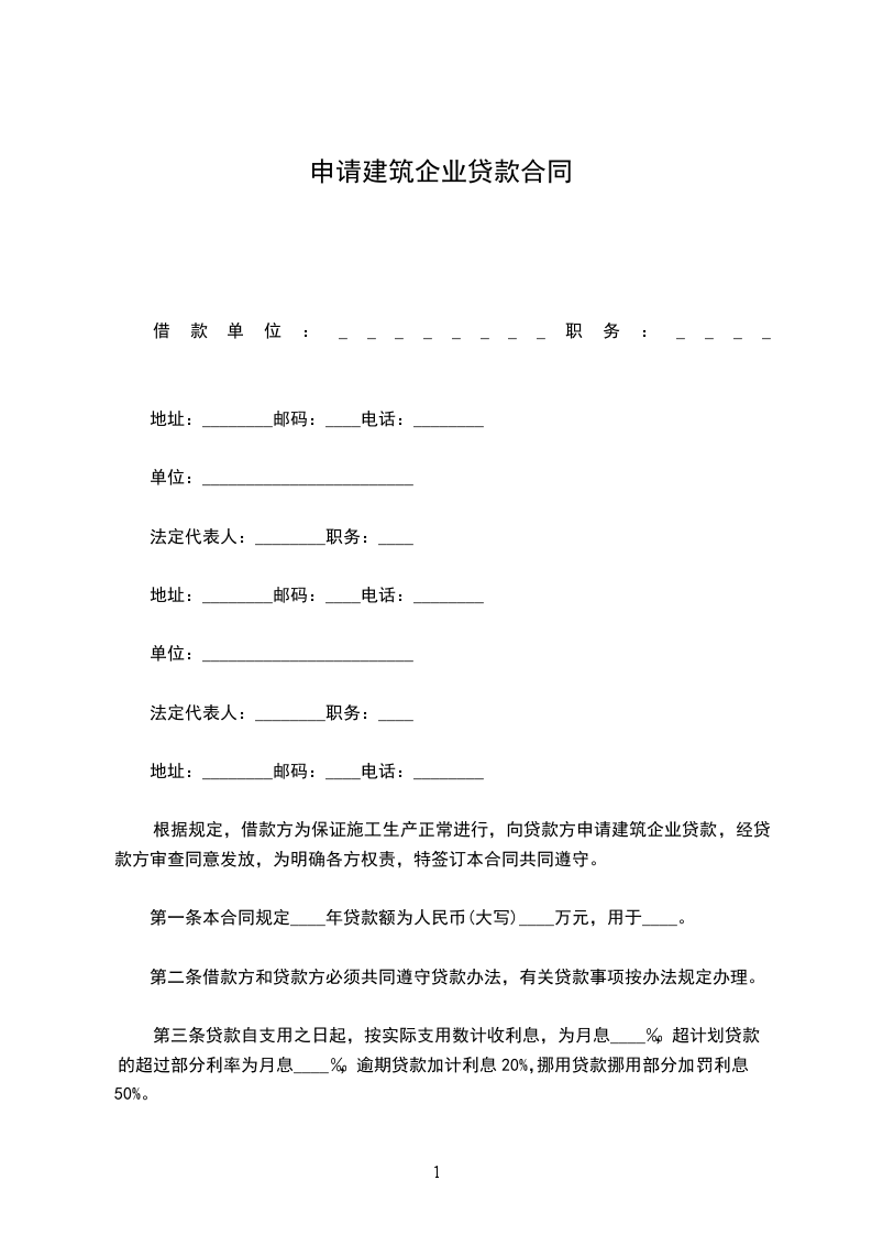 第一条本合同规定____年贷款额为人民币(大写)____万元,用于____。
