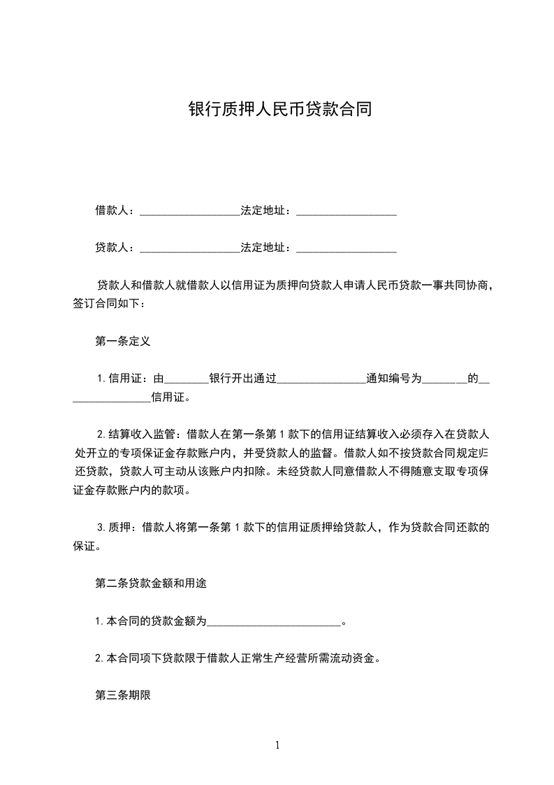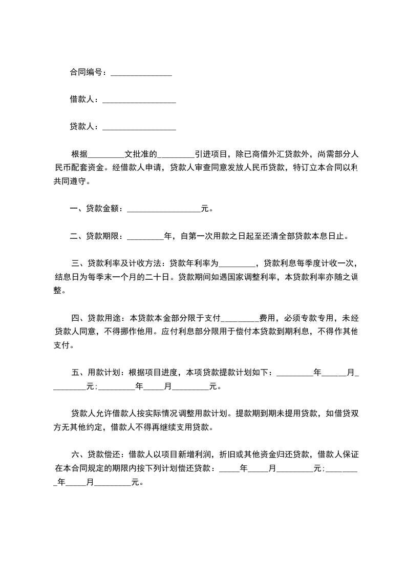 第四条借款期限为_____天,自______年____月____日到______年____月____日止。