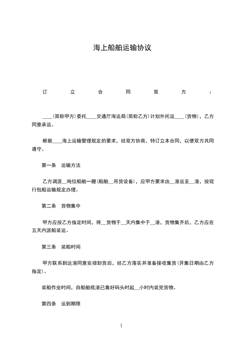 根据____海上运输管理规定的要求,经双方协商,特订立本合同,以便双方共同遵守。