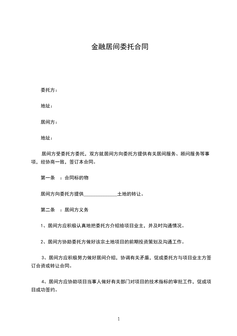 1、居间方应积极认真地把委托方介绍给项目业主,并及时沟通情况。