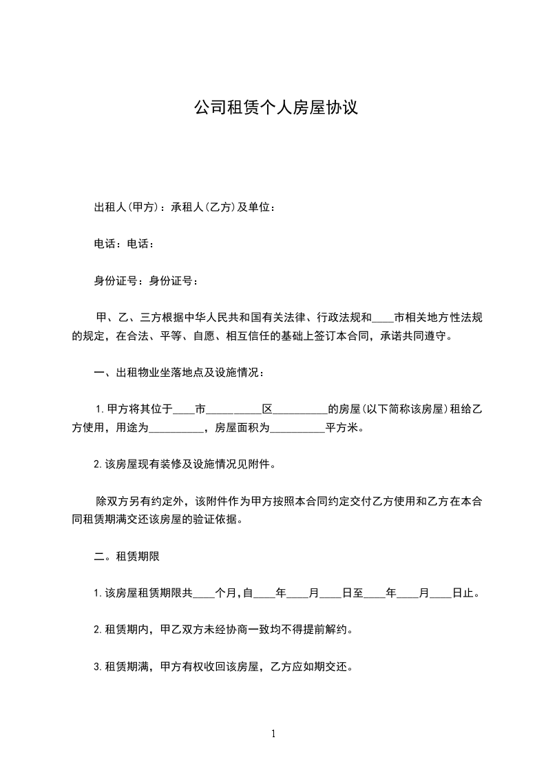 1.甲方将其位于____市__________区__________的房屋(以下简称该房屋)租给乙方使用,用途为__________,房屋面积为__________平方米。