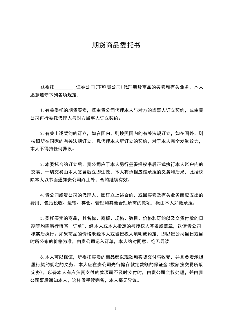 一、为了确保在_________交易所的交易能正常进行,甲乙双方均须清楚了解并严格遵守《_________期货有限公司_________交易所代理业务规则》,正确履行双方的权利和义务。