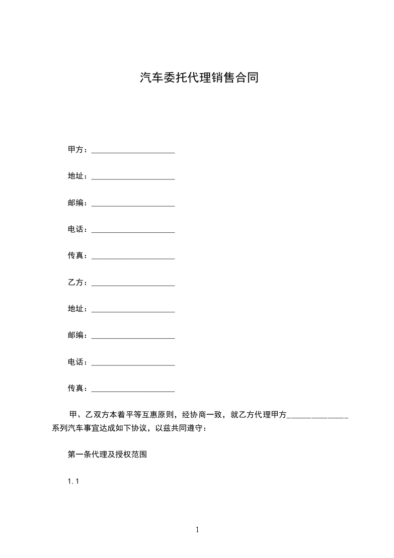 甲、乙双方本着平等互惠原则,经协商一致,就乙方代理甲方_________系列汽车事宜达成如下协议,以兹共同遵守: