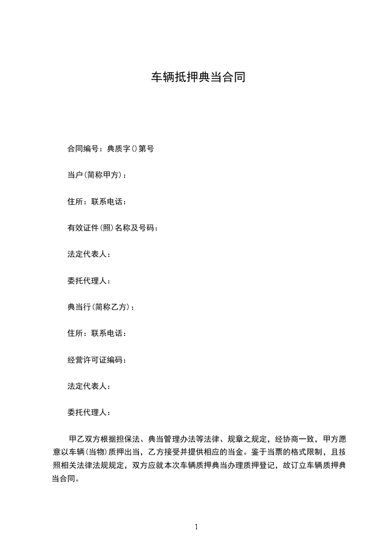 合同编号:典质字()第号