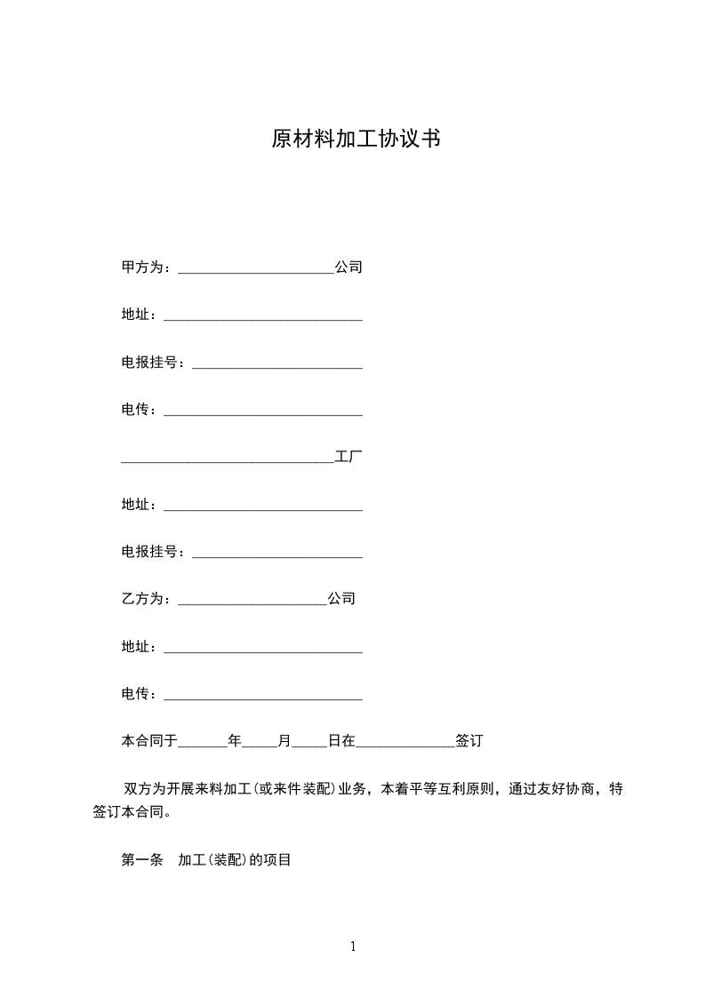 双方为开展来料加工(或来件装配)业务,本着平等互利原则,通过友好协商,特签订本合同。