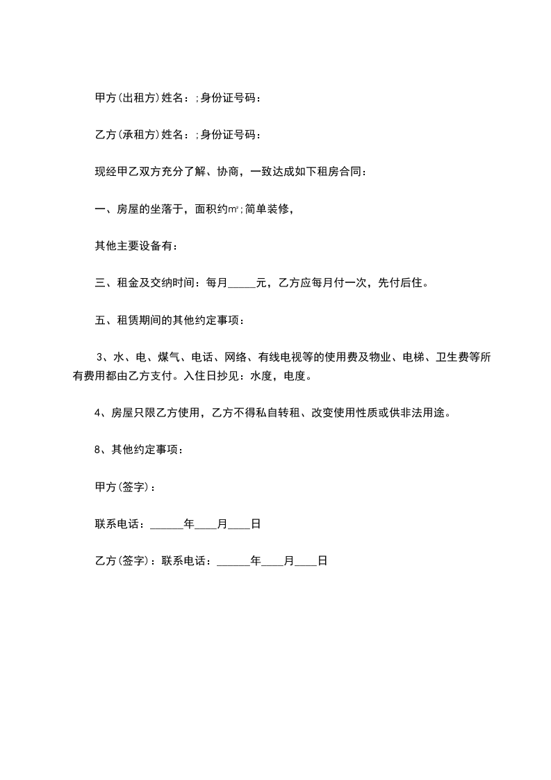 现经甲乙双方充分了解、协商,一致达成如下租房合同: