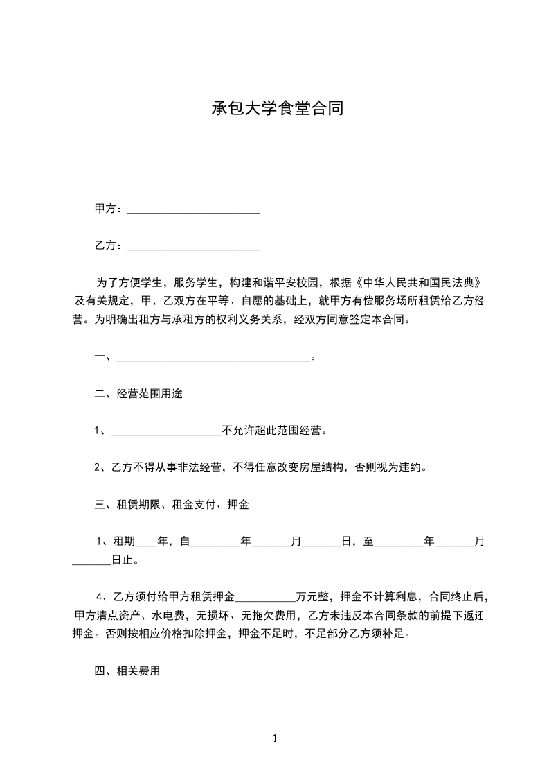 3、合同期满后,甲方所有固定资产应完好交还学校,否则甲方将按实际收取修理费或赔偿费。
