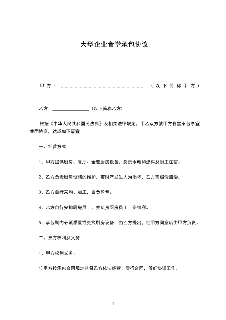 5、甲方对乙方经营的食堂存在卫生、质量、价格、服务态度等方面有检查监督权力,乙方应服从甲方职能部门管理。