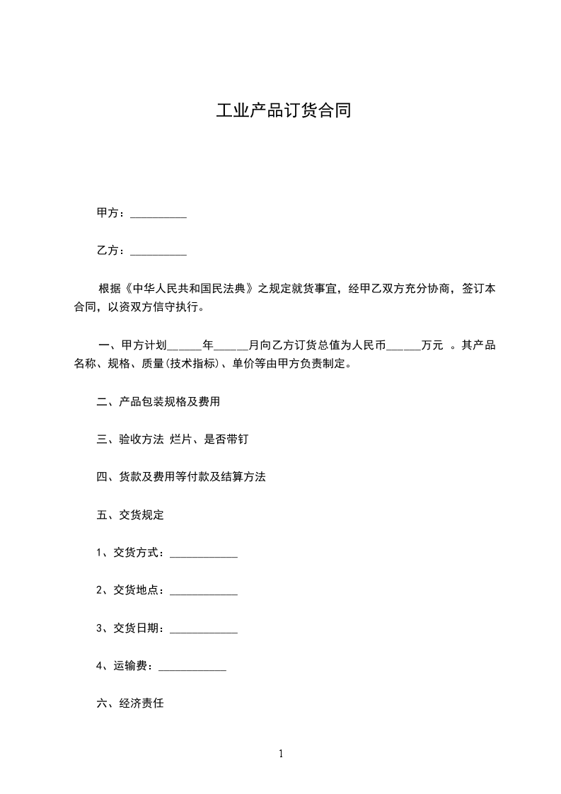 一、品名、规格、数量、价格、交(提)货日期