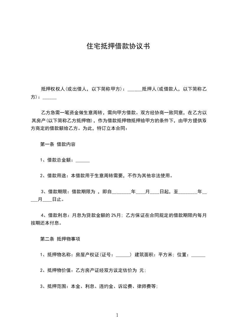 甲方因资金周转需要,向乙方申请借款。双方经协商一致同意,甲方以其所有的财产(以下简称甲方抵押物),作为借款抵押物抵押给乙方,由乙方提供双方商定的借款额给甲方。经双方自愿平等协商,就有关事项订立如下协议: