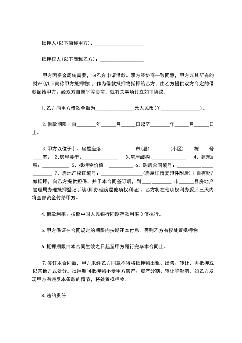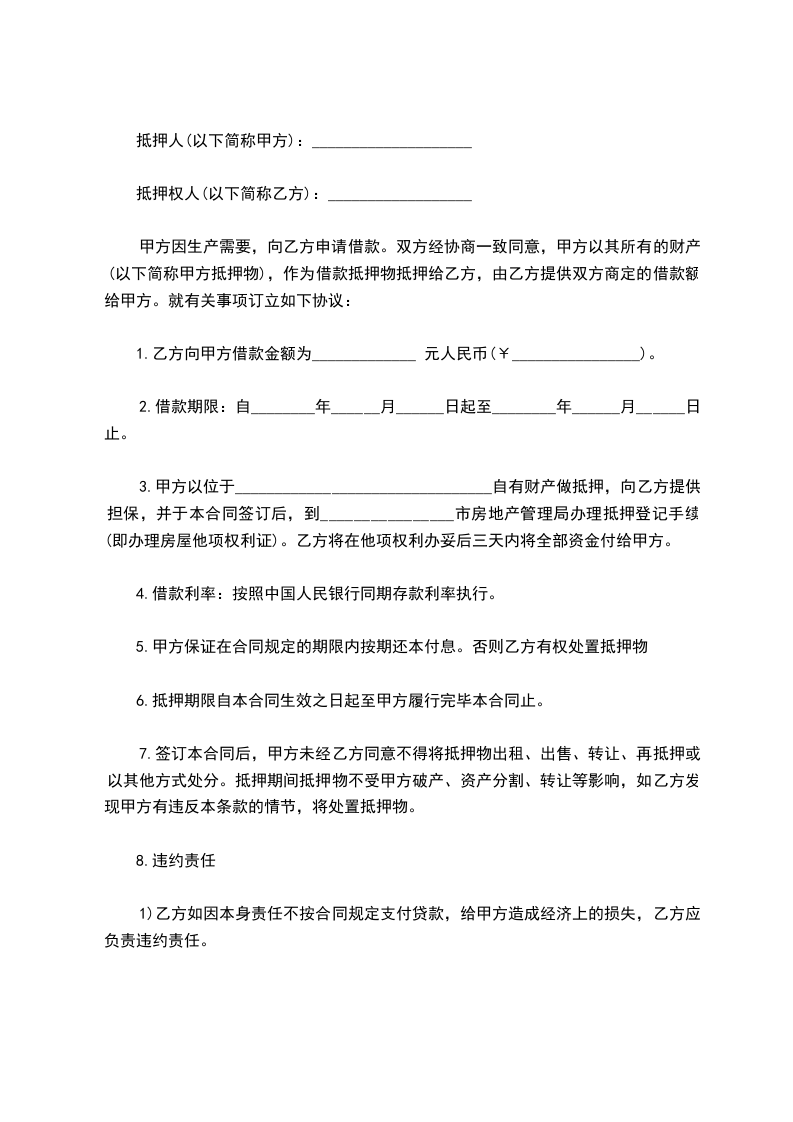 9.本合同自签订之日起,双方应向_________市______(县)公证处办理公证手续,有关抵押的登记、公证等一切费用由乙方负责。