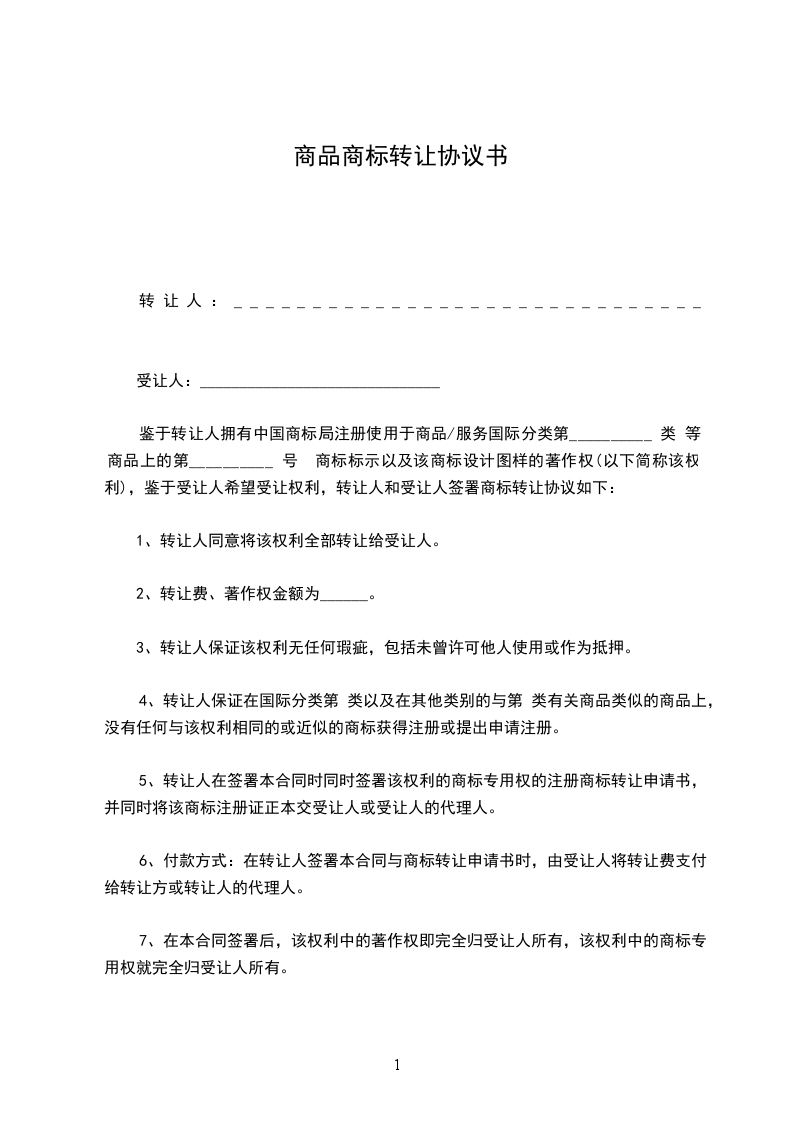 1.转让价格:乙方应向甲方支付的商标转让费用为人民币[X]元(大写:[大写金额]元整)。
