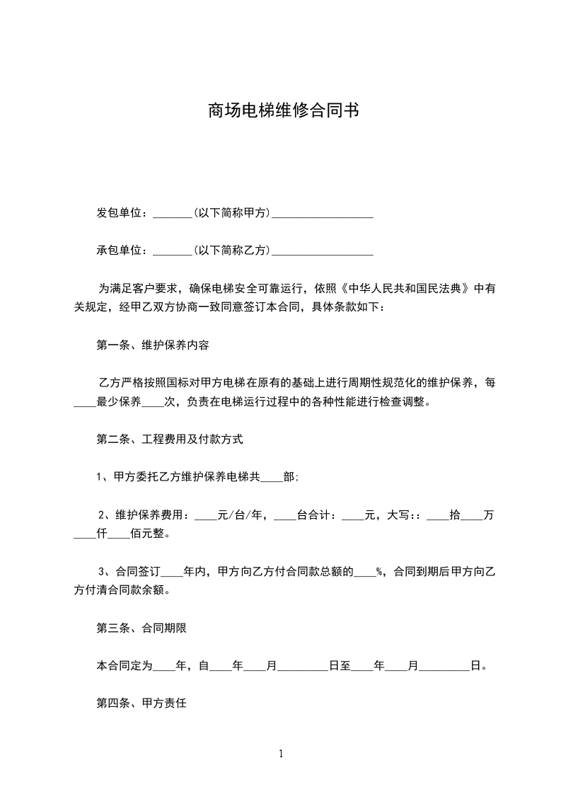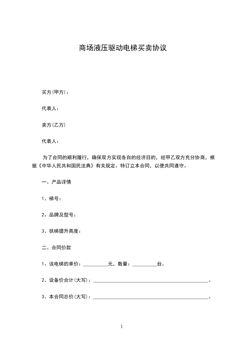 1、该电梯的单价:__________元,数量:__________台。