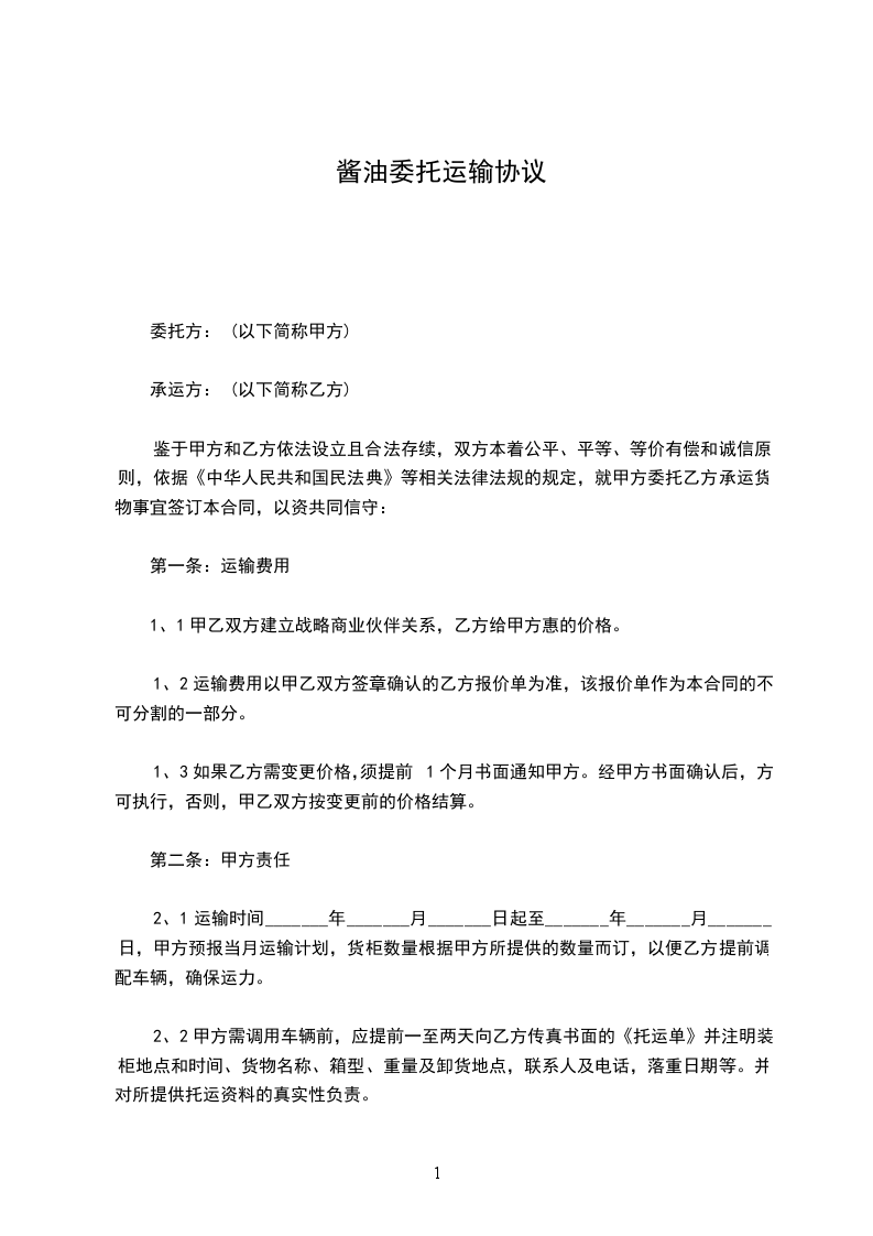 甲乙双方经友好协商,就乙方车辆为甲方运送油品一事达成如下协议: