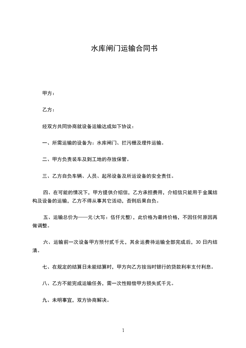 一、所需运输的设备为:水库闸门、拦污栅及埋件运输。