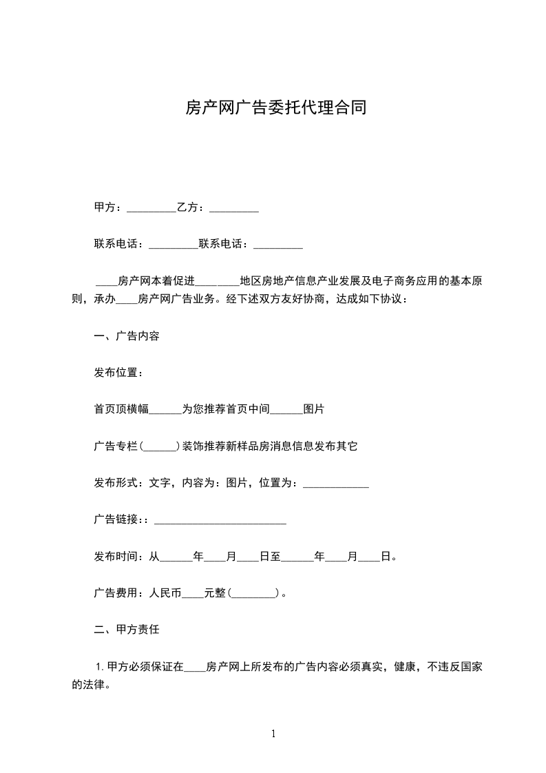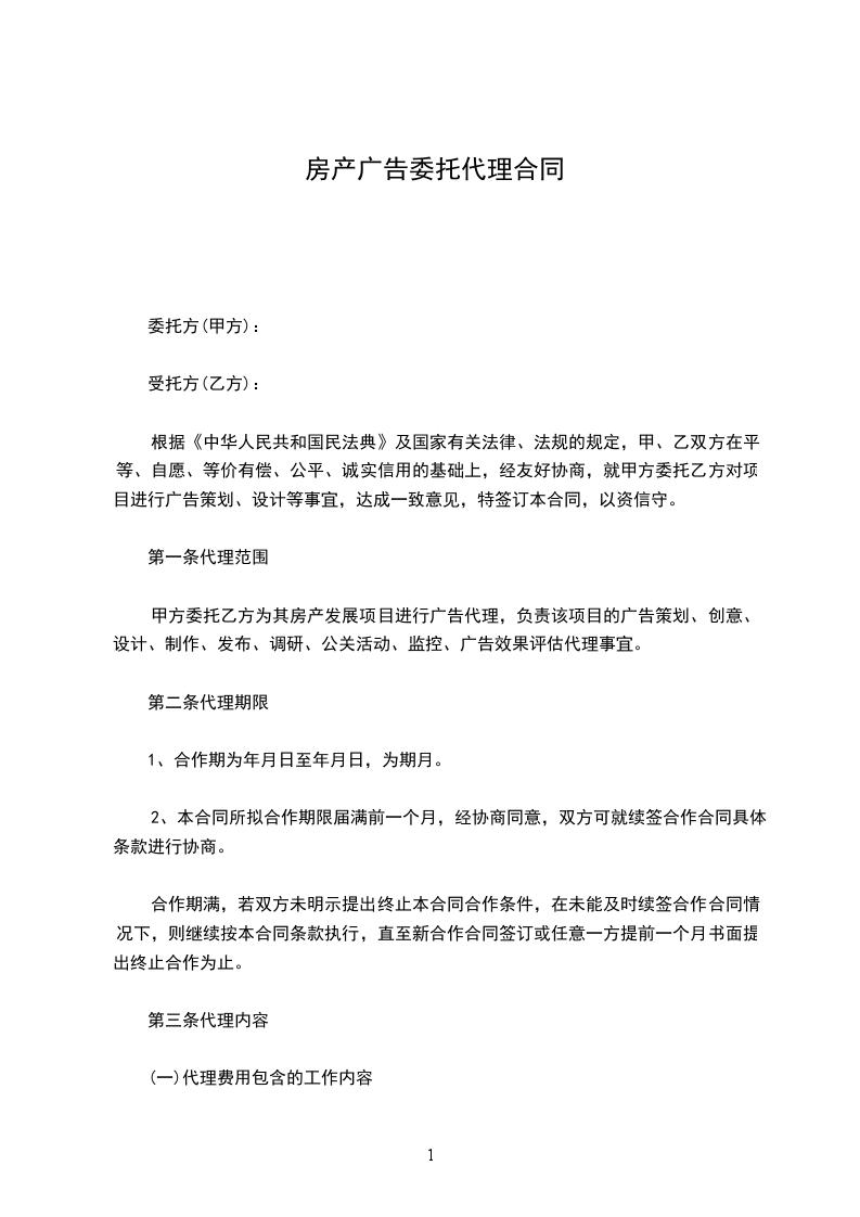 (一)甲方以书面方式委托乙方代理项目广告。