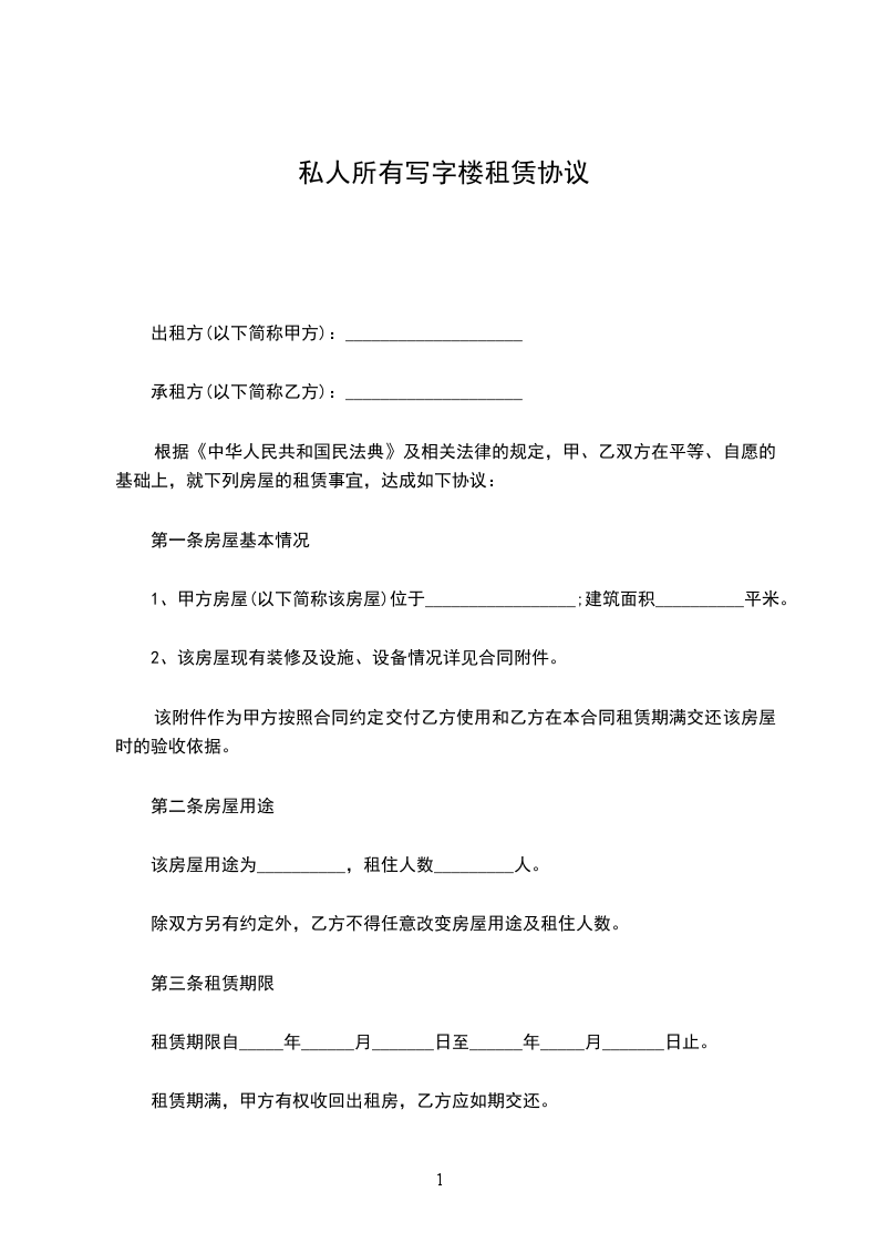 根据《中华人民共和国民法典》及相关法律的规定,甲、乙双方在平等、自愿的基础上,就下列房屋的租赁事宜,达成如下协议:
