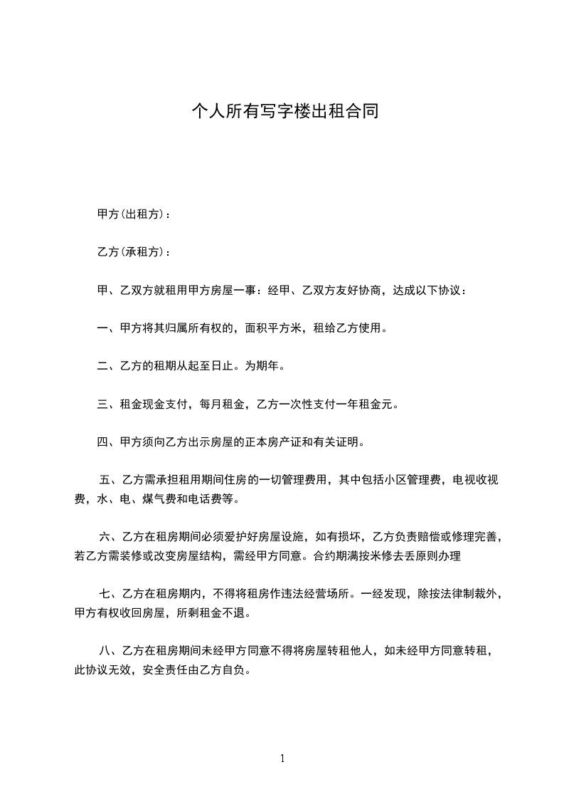 1、在房屋租赁期间,以下费用由甲方支付:__________;