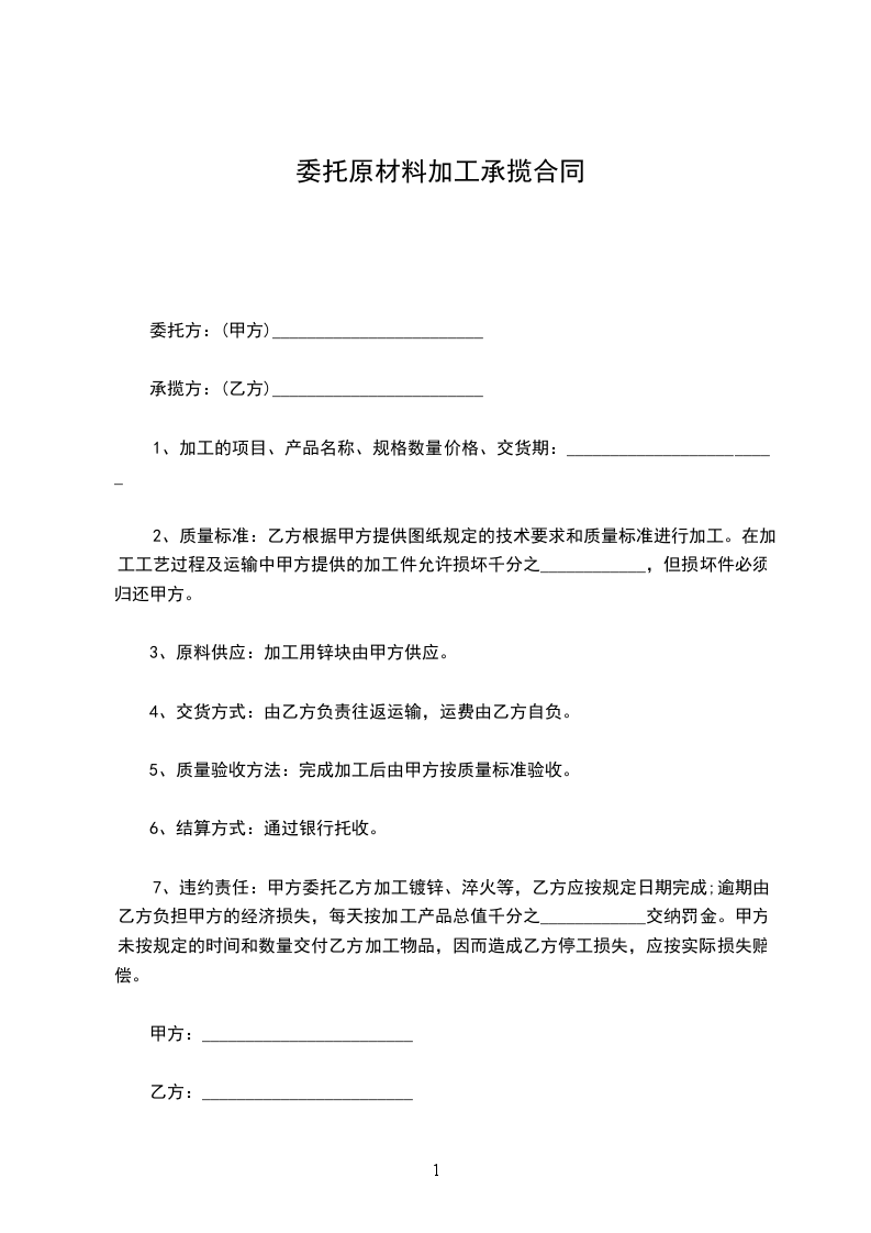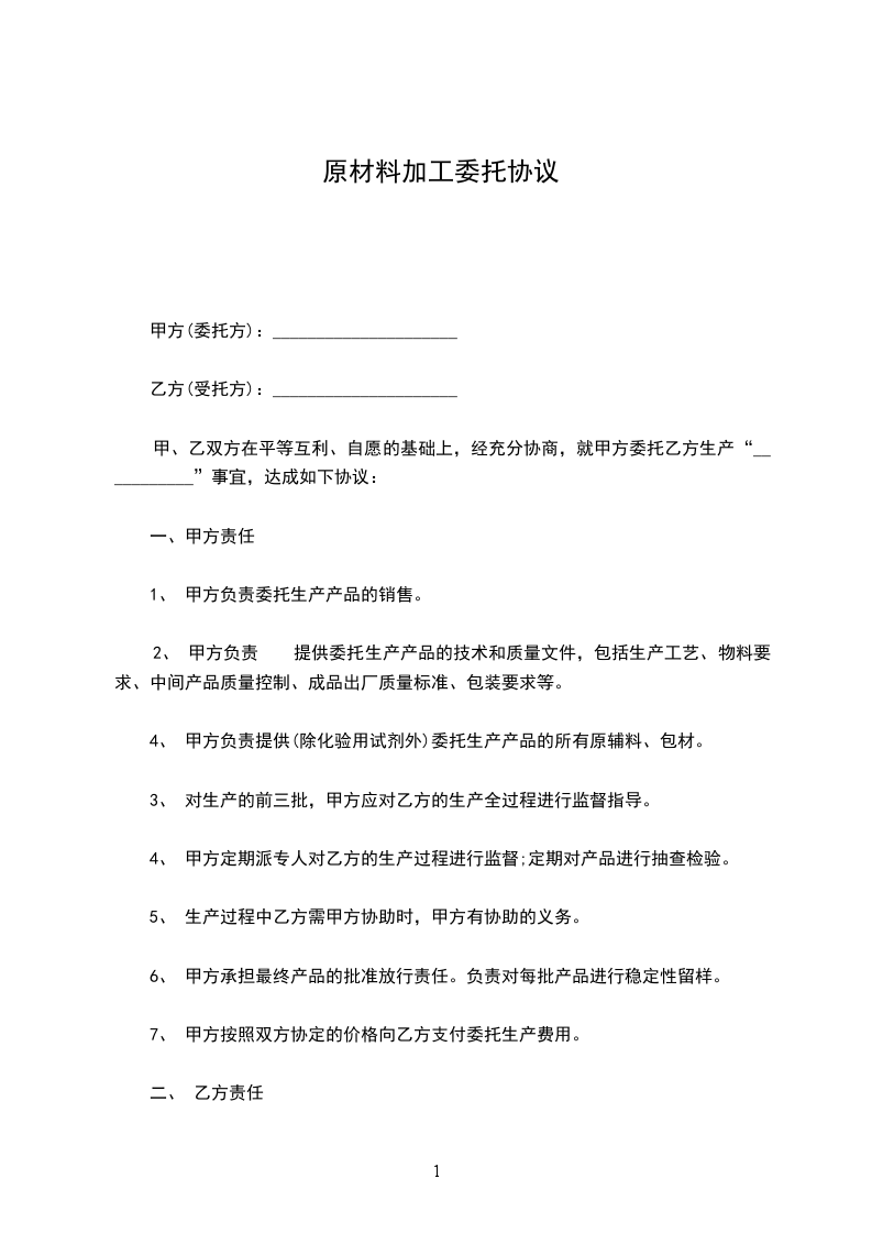 6、乙方负责该批委托加工产品销售期内的质量问题;