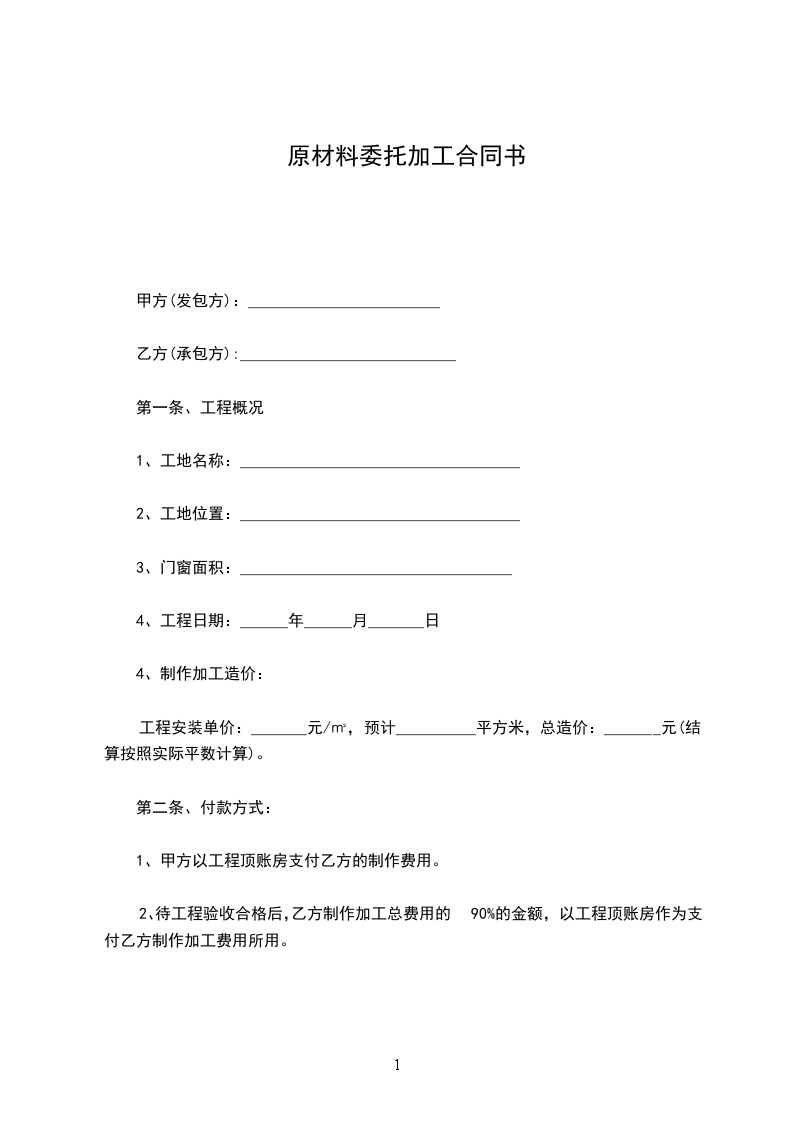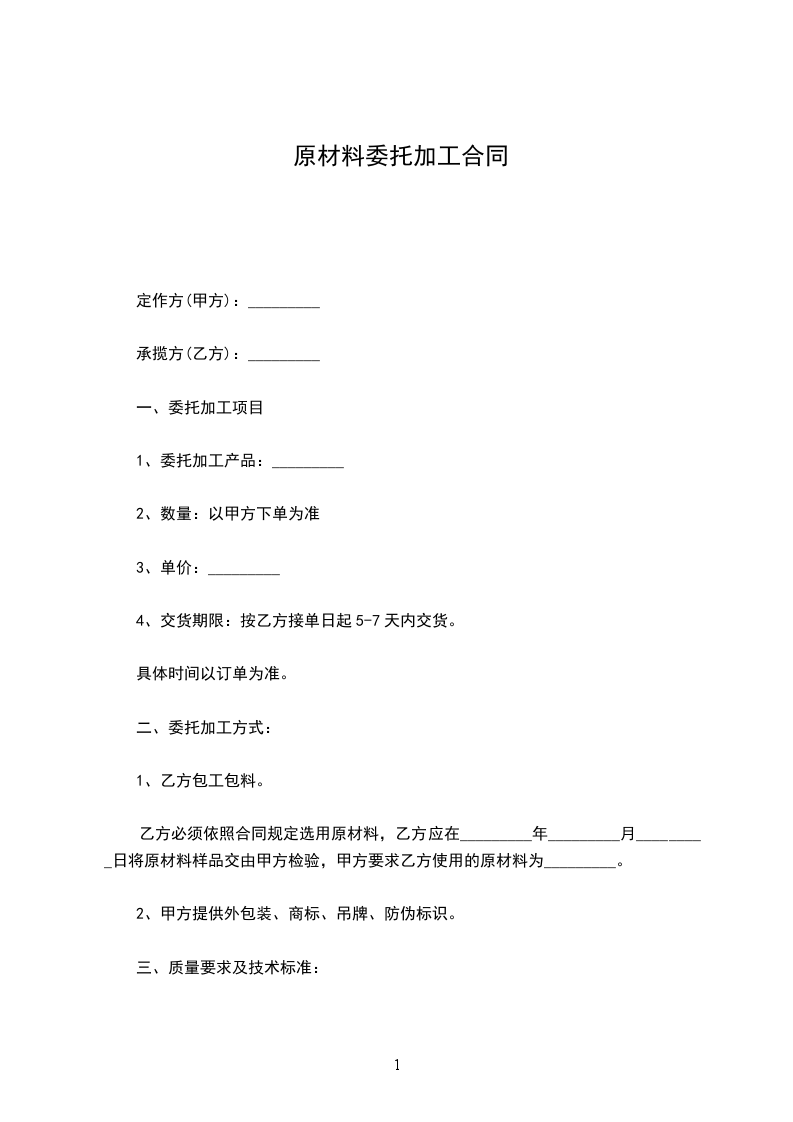 1、乙方严格按照甲方提出的质量要求进行加工,于_________年_________月_________日制作出样品,经甲方确认后封样,该样品由甲方保存。
