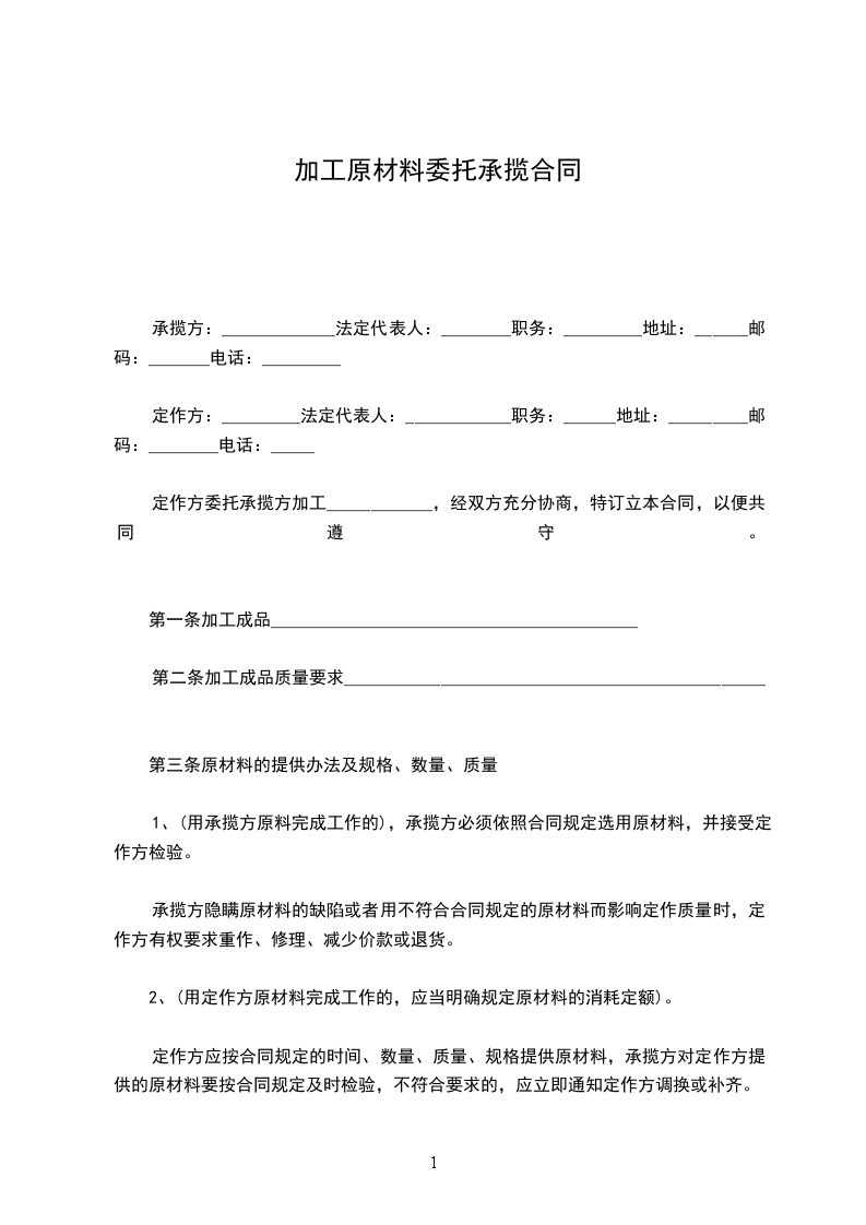 1、委托加工产品:_________