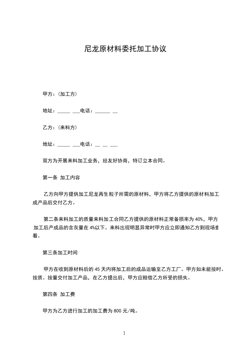9、乙方不得以任何方式或途径与甲方客户直接联系,乙方若有此行为,甲方有权终止加工合同,若由此造成甲方损失,甲方有权追究其违约法律责任。