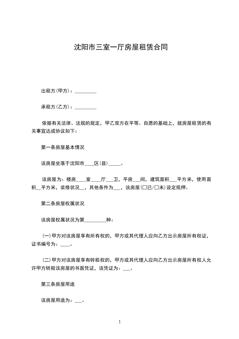 (一)房屋租赁期自___年___月___日至___年___月__日,共计___年___个月。