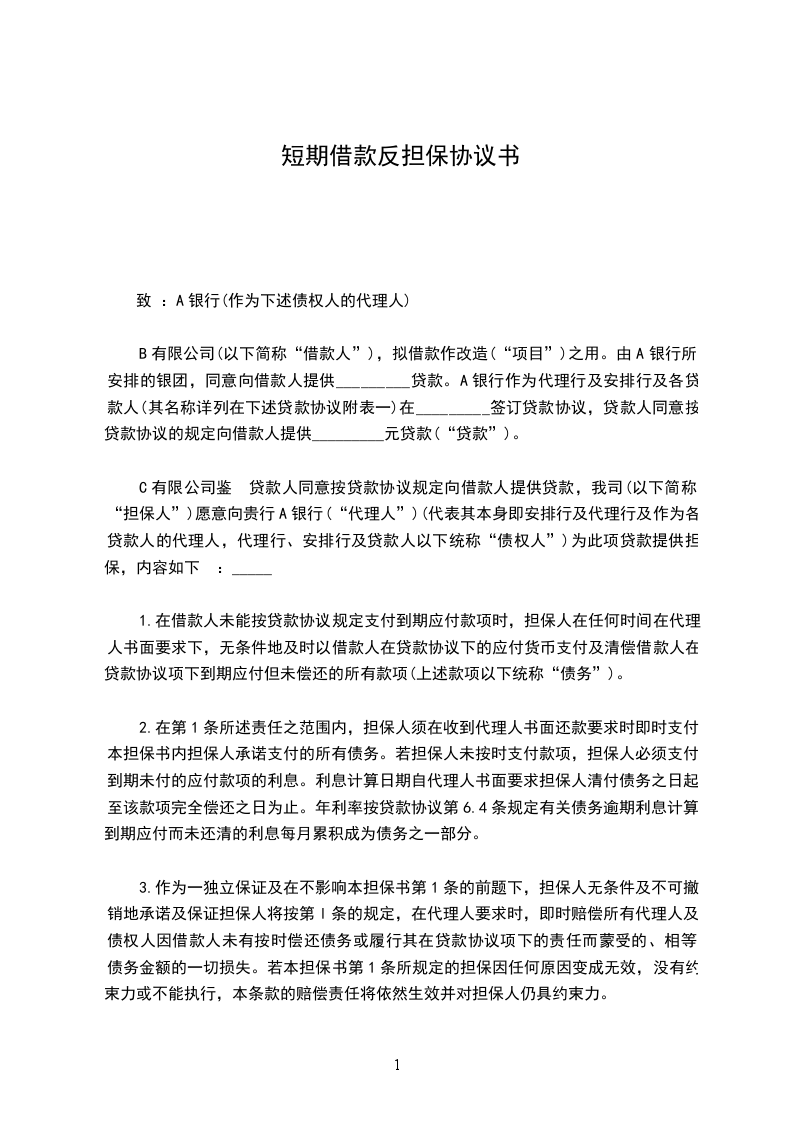 二、本合同的保证为不可撤销的保证,不受借款人与任何单位签订的任何协议或文件的影响,也不因借款人破产、无力清偿债务、丧失企业资格、更改组织章程等各种情况而有任何改变。