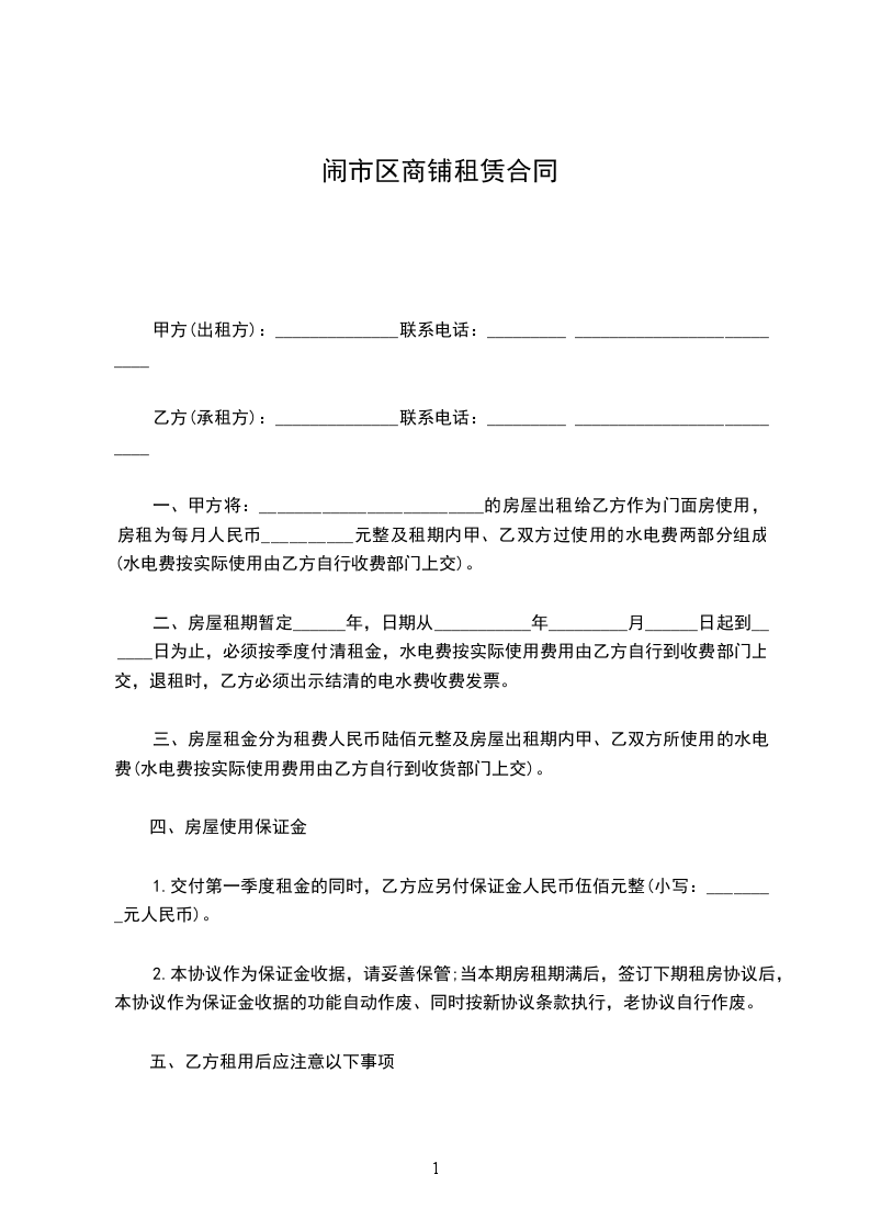 承租人:(以下称乙方)_______联系电话:____________身份证号码:_______________