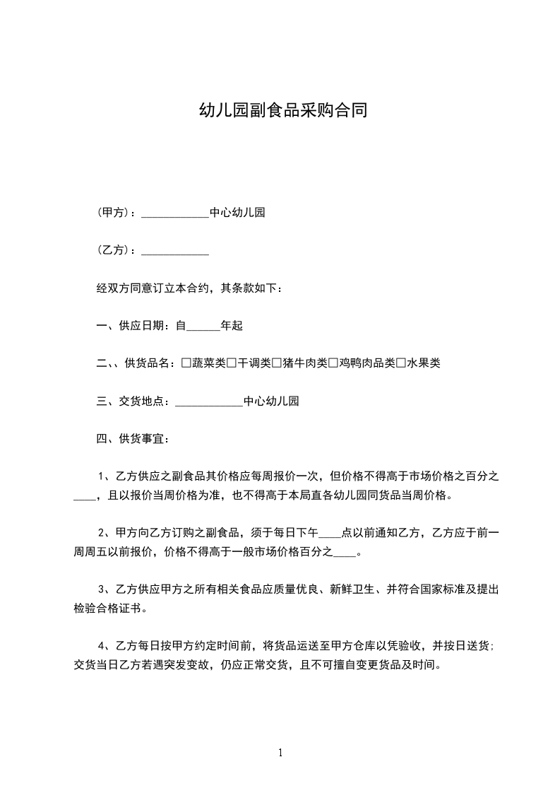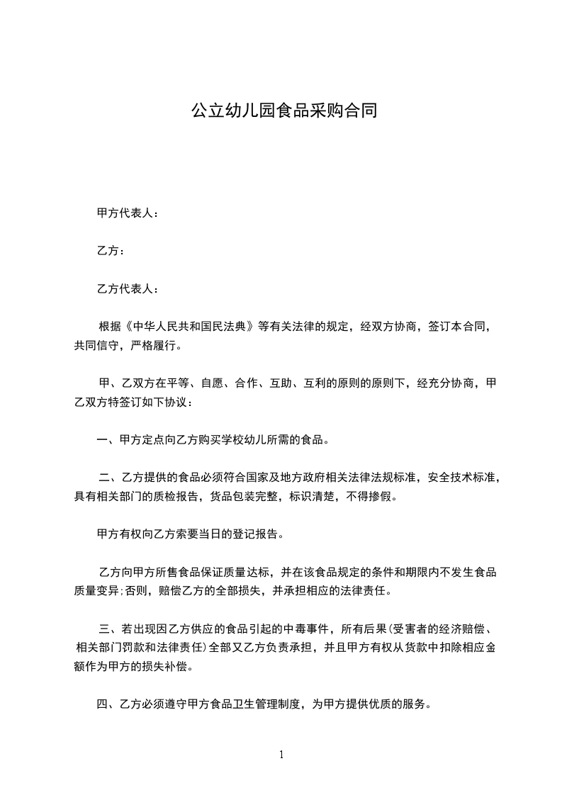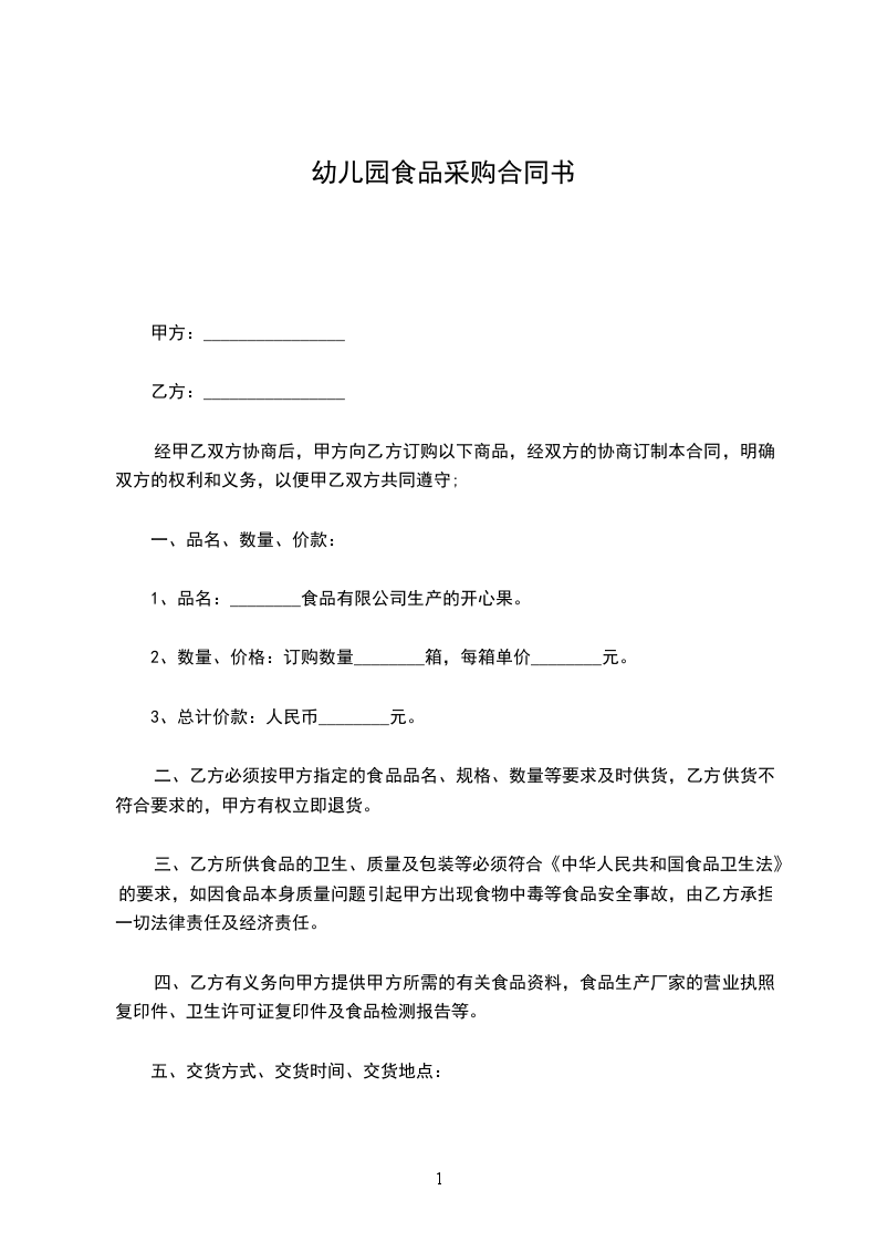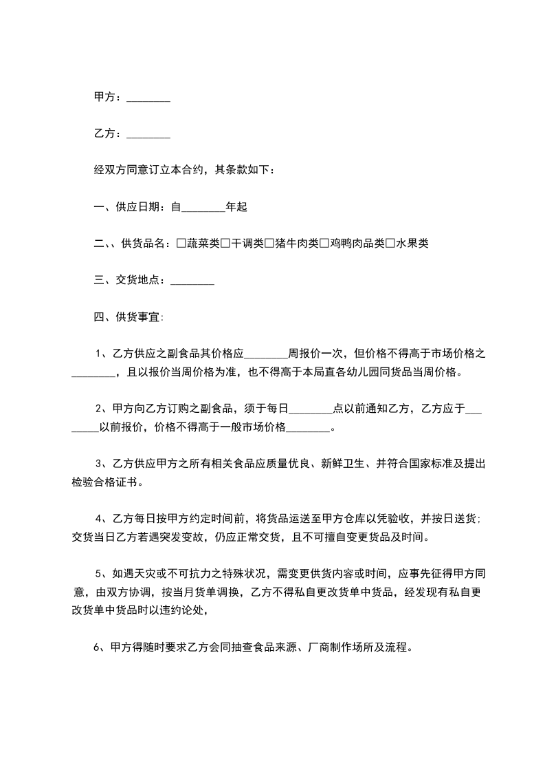 一、甲方定点向乙方购买学校幼儿所需的食品。
