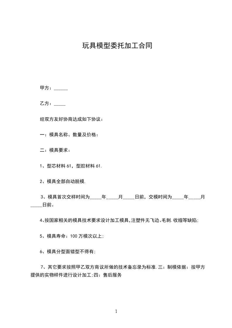 1.加工数量:甲方委托乙方加工的玩具数量为______件(具体数量以甲方每次下达的订单为准)。
