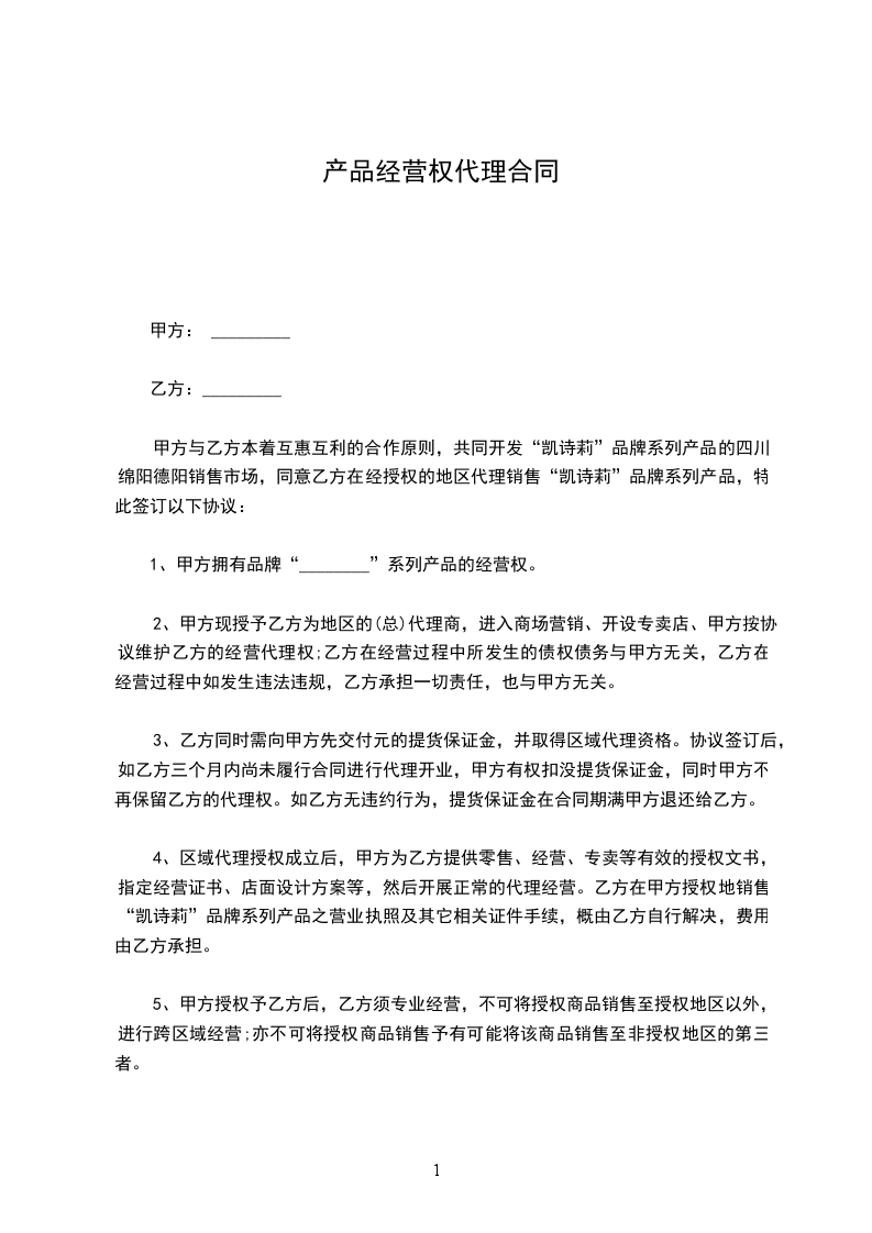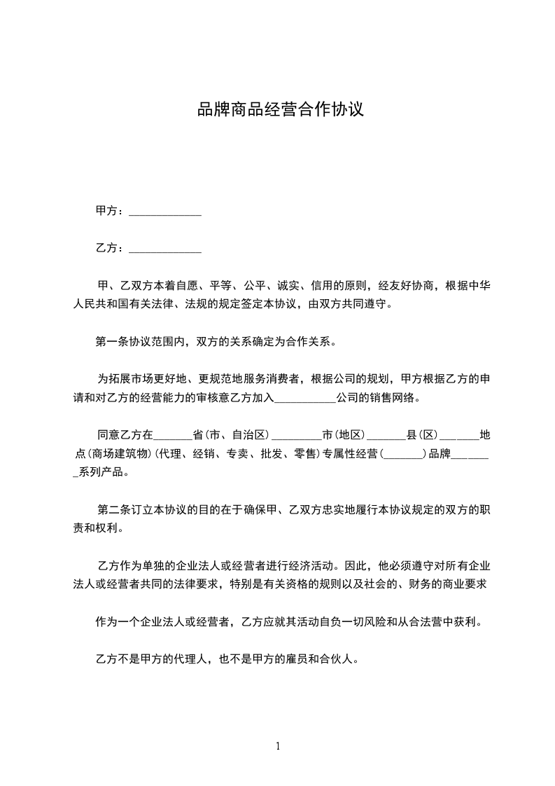 篇1代销商品经营合同