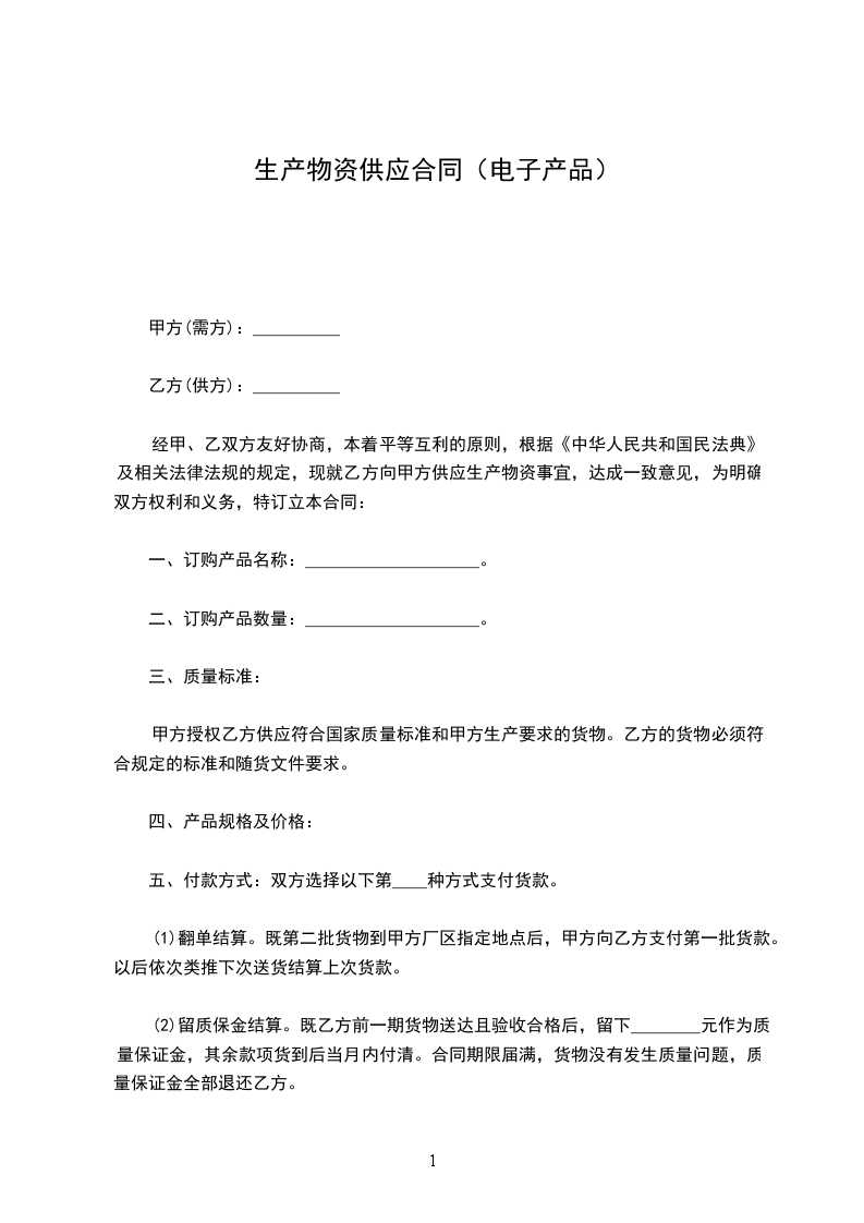 经甲、乙双方友好协商,本着平等互利的原则,根据相关法律法规的规定,现就乙方向甲方供应生产物资事宜,达成一致意见,为明确双方权利和义务,特订立本合同: