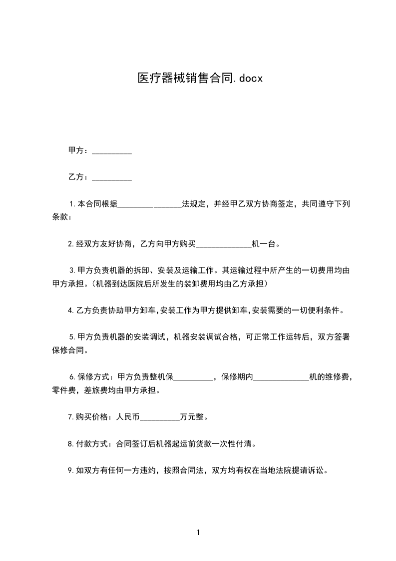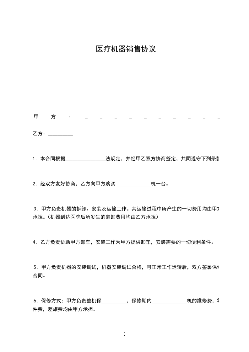 3.甲方负责机器的拆卸、安装及运输工作。其运输过程中所产生的一切费用均由甲方承担。(机器到达医院后所发生的装卸费用均由乙方承担)