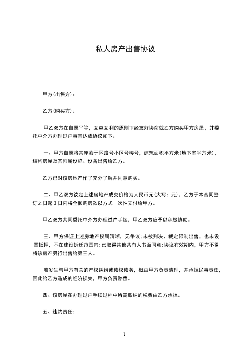 一、甲方自愿将其座落于区路号小区号楼号,建筑面积平方米(地下室平方米),结构房屋及其附属设施、设备出售给乙方。