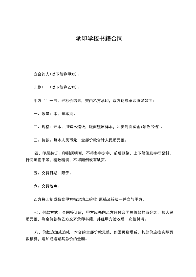 七、付款方式:合同签订后,甲方应先向乙方预付合同总价款的百分之,核人民币_____元整,剩余价款待乙方交齐承印书籍,并经甲方验收后一次性付清。