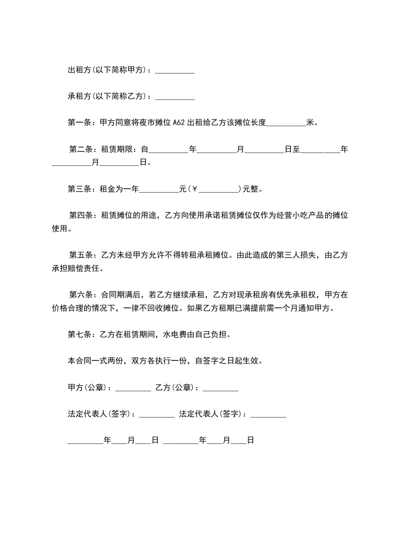 2.甲方应保证该摊位符合安全使用标准,提供必要的使用条件。