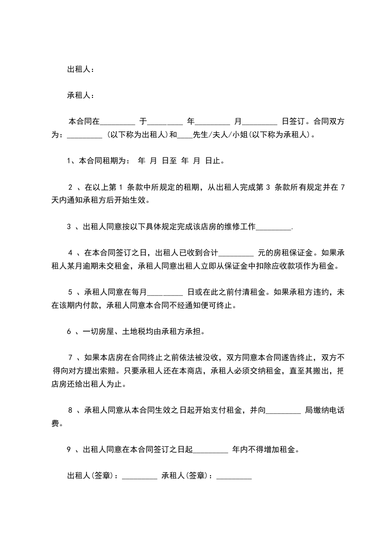 2.租赁期满,乙方应如期交还房屋。乙方如需续租,须在租赁期满前______个月书面通知甲方,经甲方同意后,重新签订租赁合同。