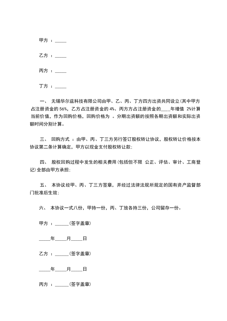第二条乙方收购甲方整体股权的形式