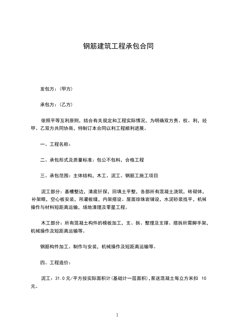 三、承包范围:主体结构,木工、泥工、钢筋工施工项目