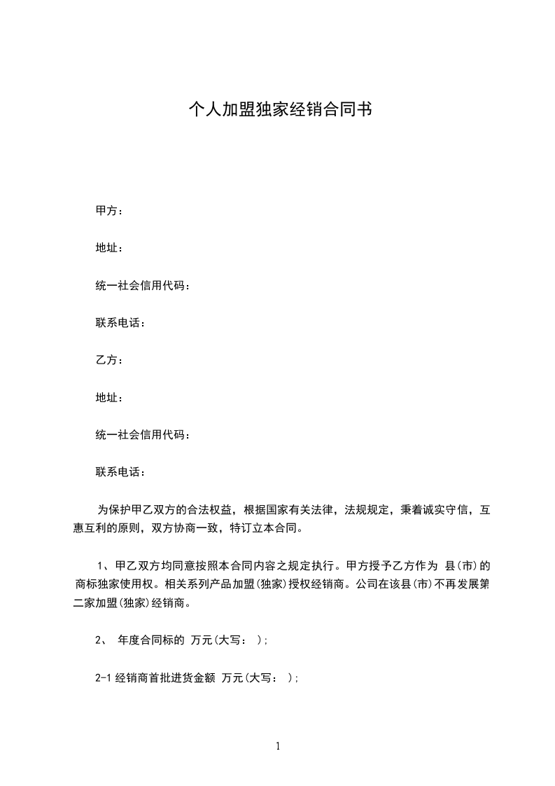 鉴于甲方拥有[品牌名称]的知识产权及相关经营资源,乙方认可甲方品牌并愿意在约定区域内以独家加盟的方式开展经营活动,双方经友好协商,依据《中华人民共和国民法典》等相关法律法规,达成如下协议: