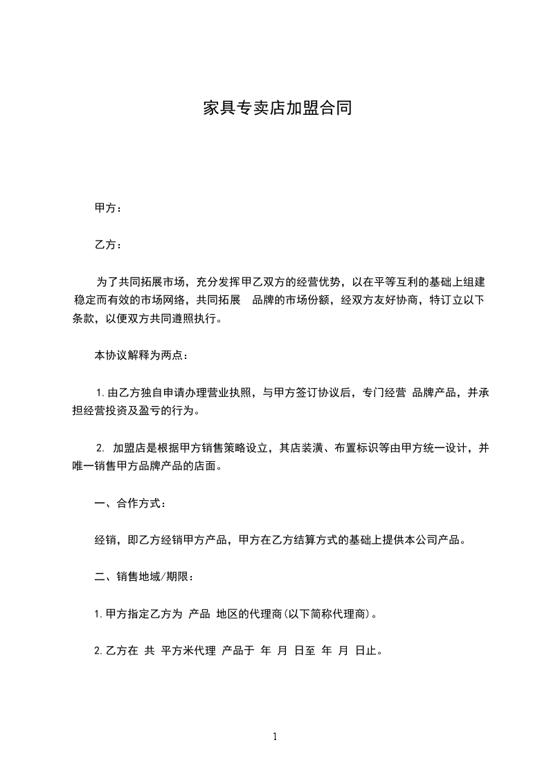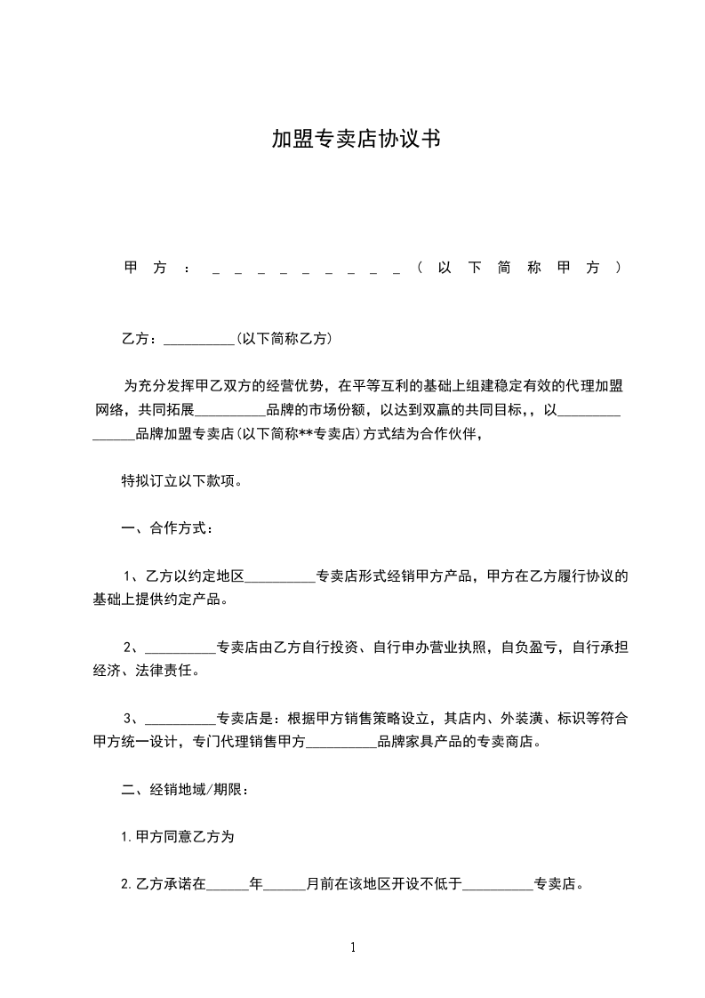 1.有关甲方的说明:“_________公司”是甲方的公司名称,“_________”是甲方的专卖店品牌名称。