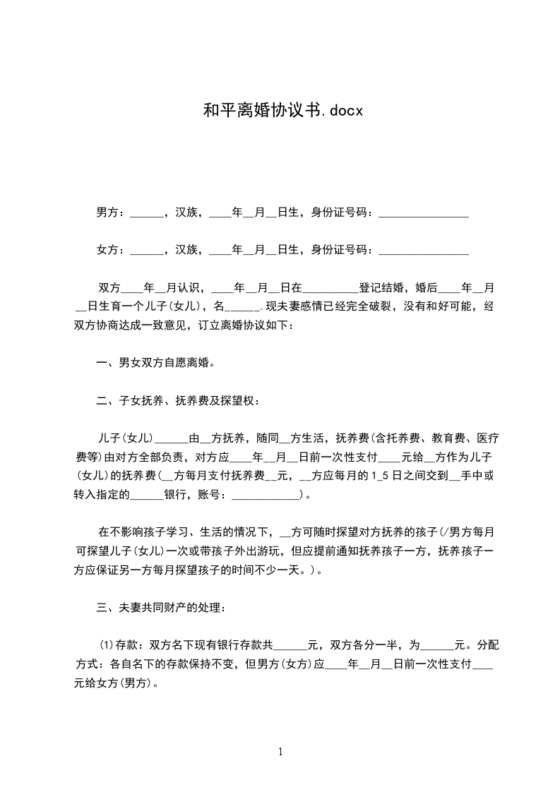 男方:____(写明姓名、出生日期、住址等)
