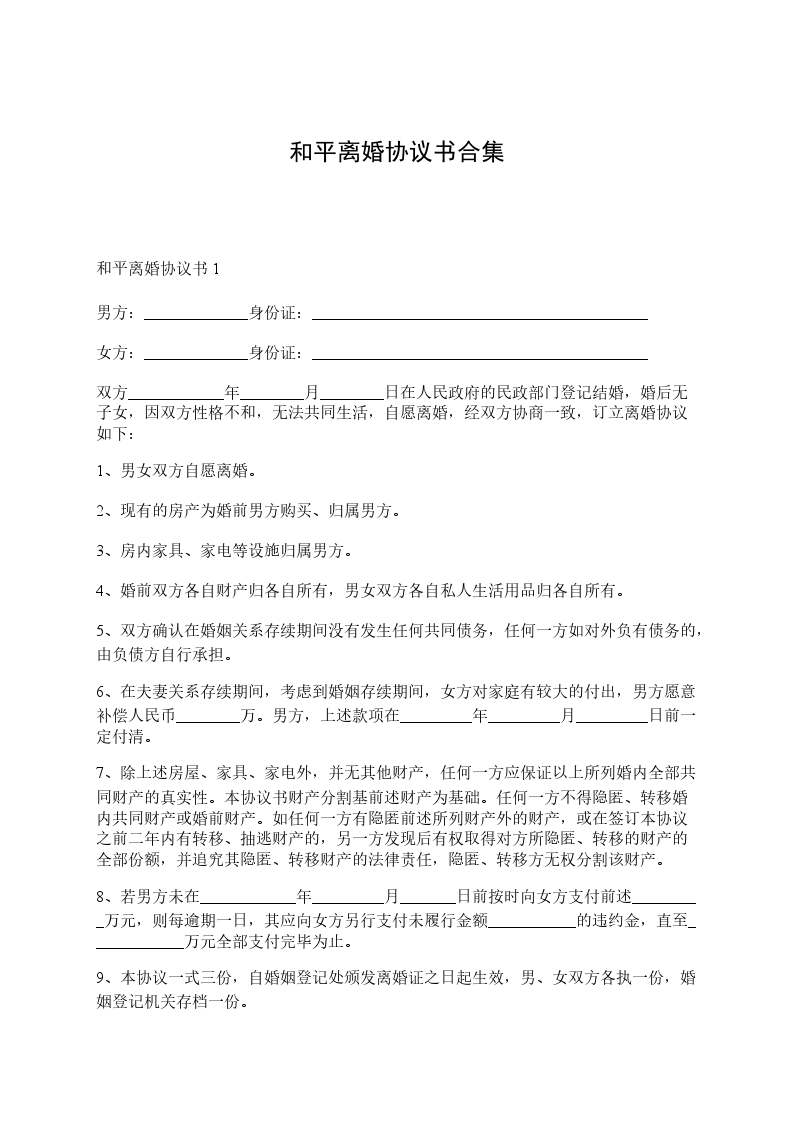 本协议一式叁份,双方各执一份,婚姻登记机关存档一份。