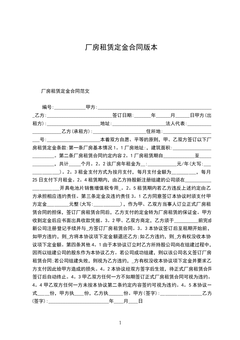 1.厂房租赁自至_____年_____月_____日止。租赁期